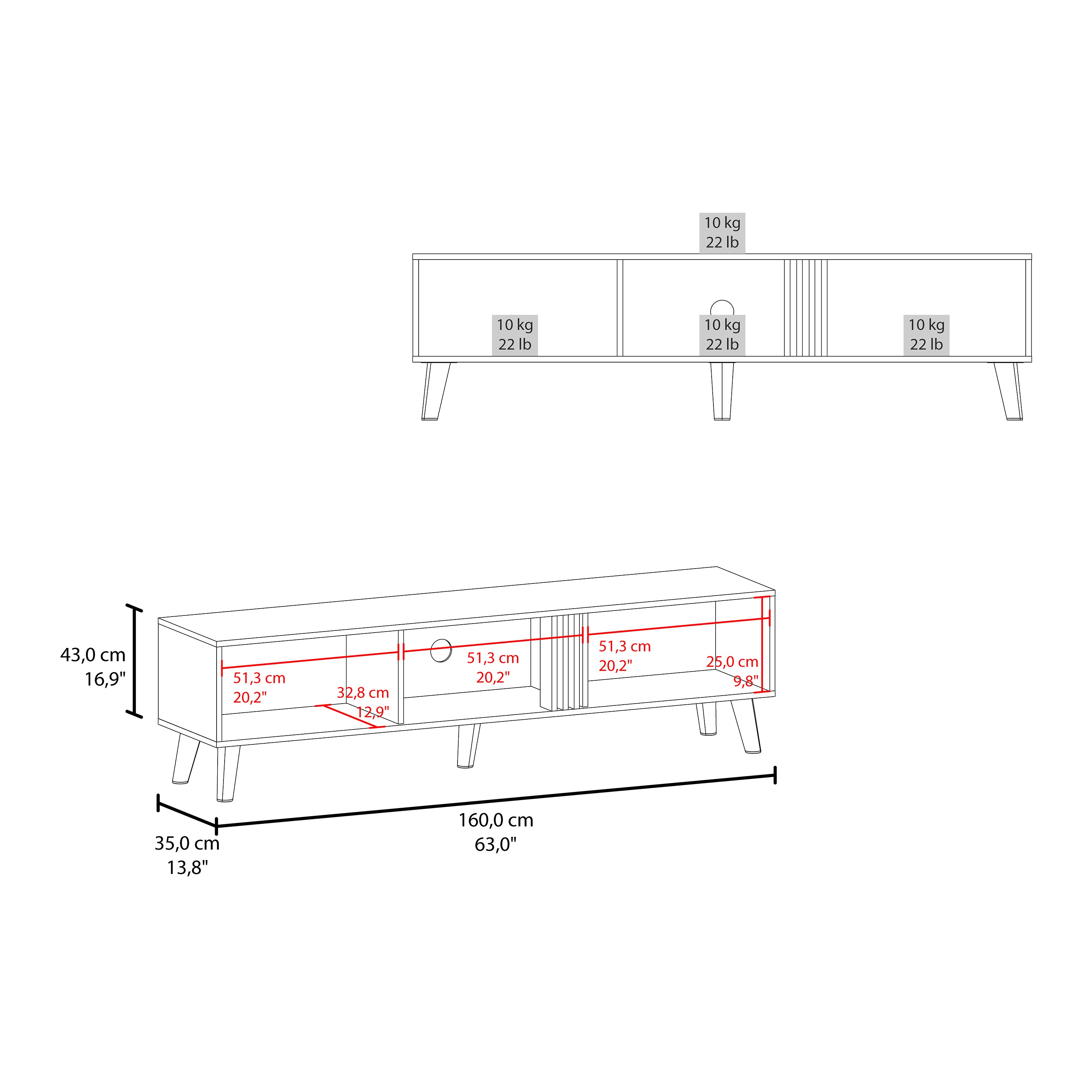 - Spacious Design: Measuring 63" W x 17" H x 13.8" D, it accommodates up to a 70" TV, providing ample space for all your entertainment needs.