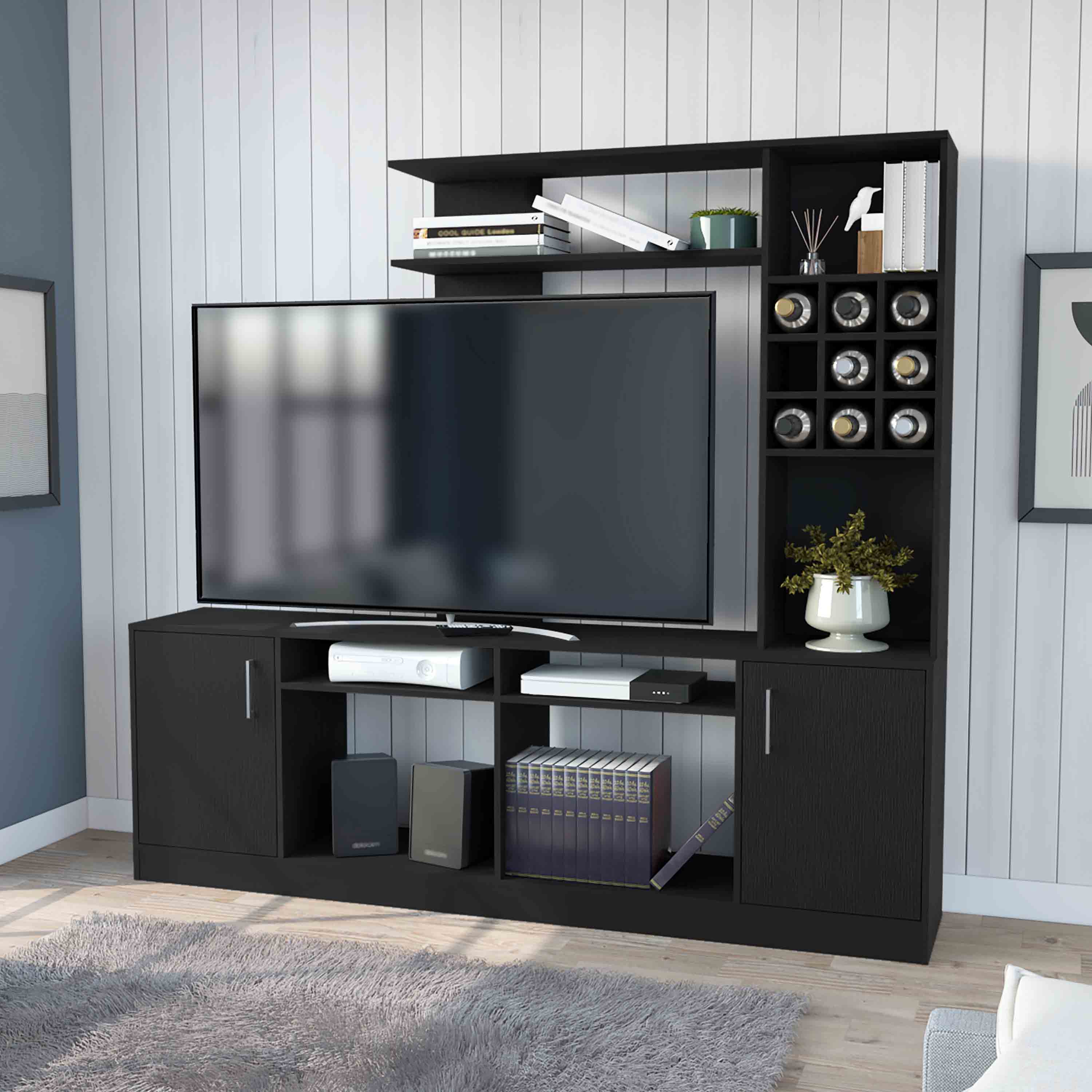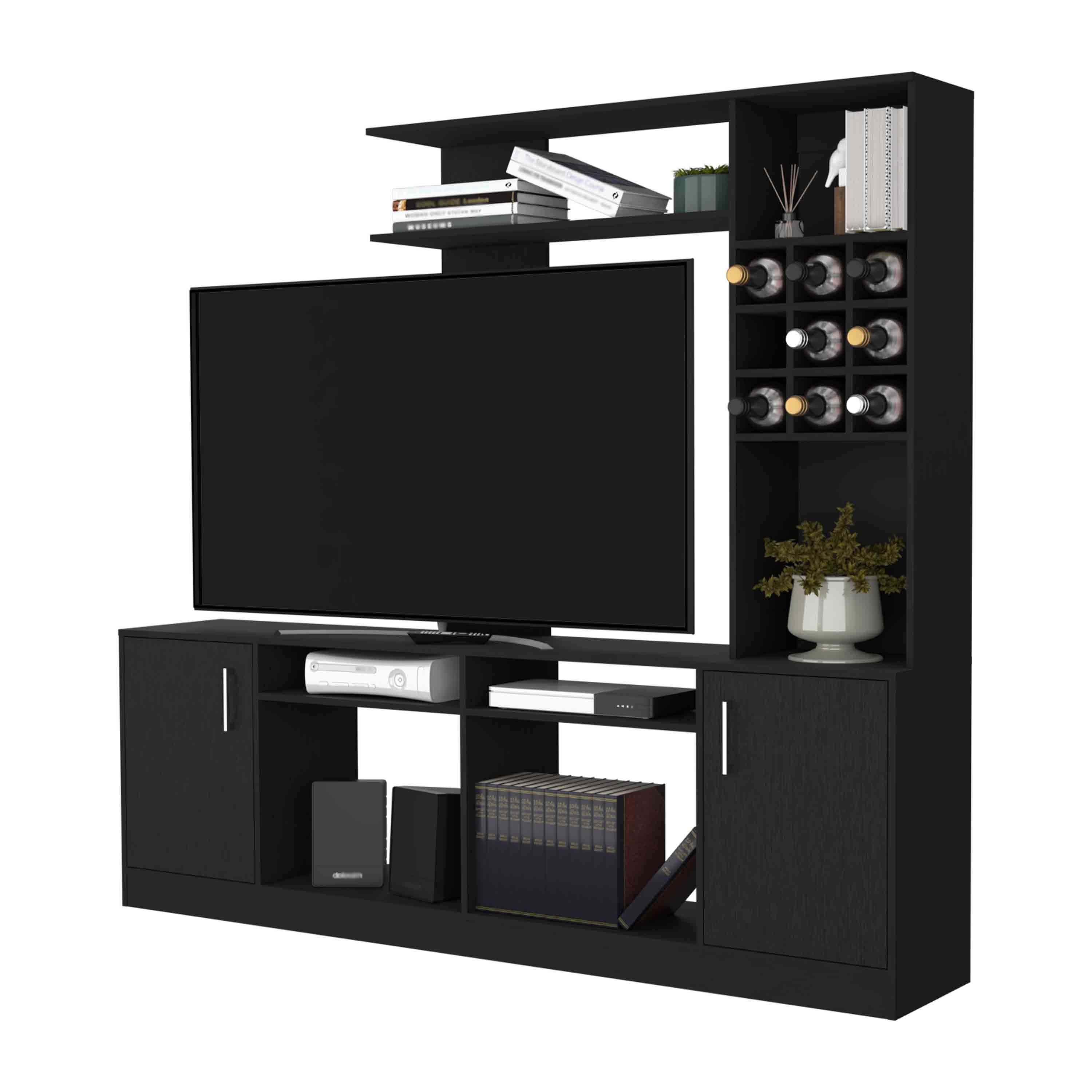 Bring bold style and practical storage to your living room with this Vibrant Entertainment Center. Designed to accommodate large televisions while keeping media, games, and decorative items organized, it combines a sleek black finish with a sturdy particle board build for everyday use and easy integration into modern interiors.