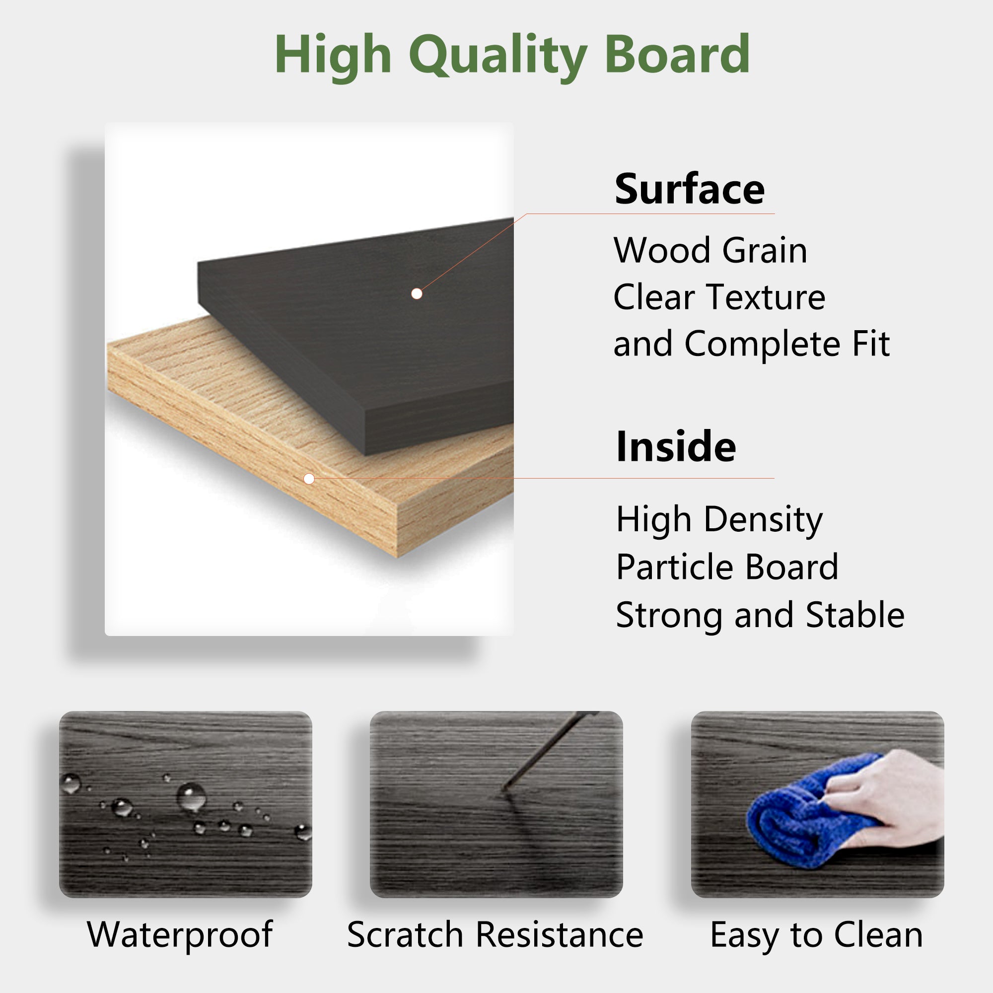 - Durable construction: High-quality particleboard with a wood-grain veneer offers scratch resistance, water resistance, and supports up to 220 lb.