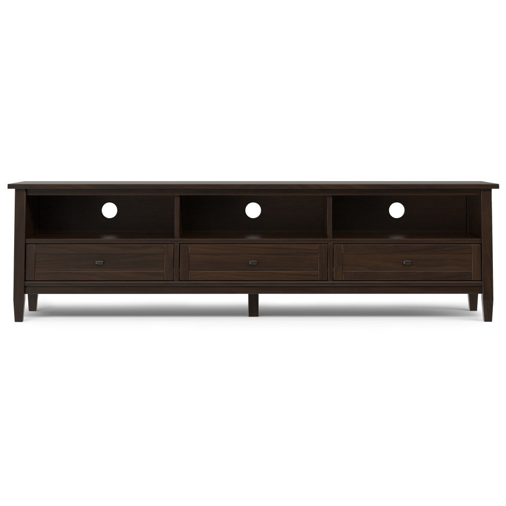 A warm, versatile media stand that blends classic Shaker-inspired simplicity with modern functionality—designed to showcase large TVs while keeping media components organized and out of sight. Handcrafted from solid wood and finished in a rich Tobacco Brown, this low-profile console offers substantial storage, cable management, and a clean transitional silhouette that complements a wide range of interiors.