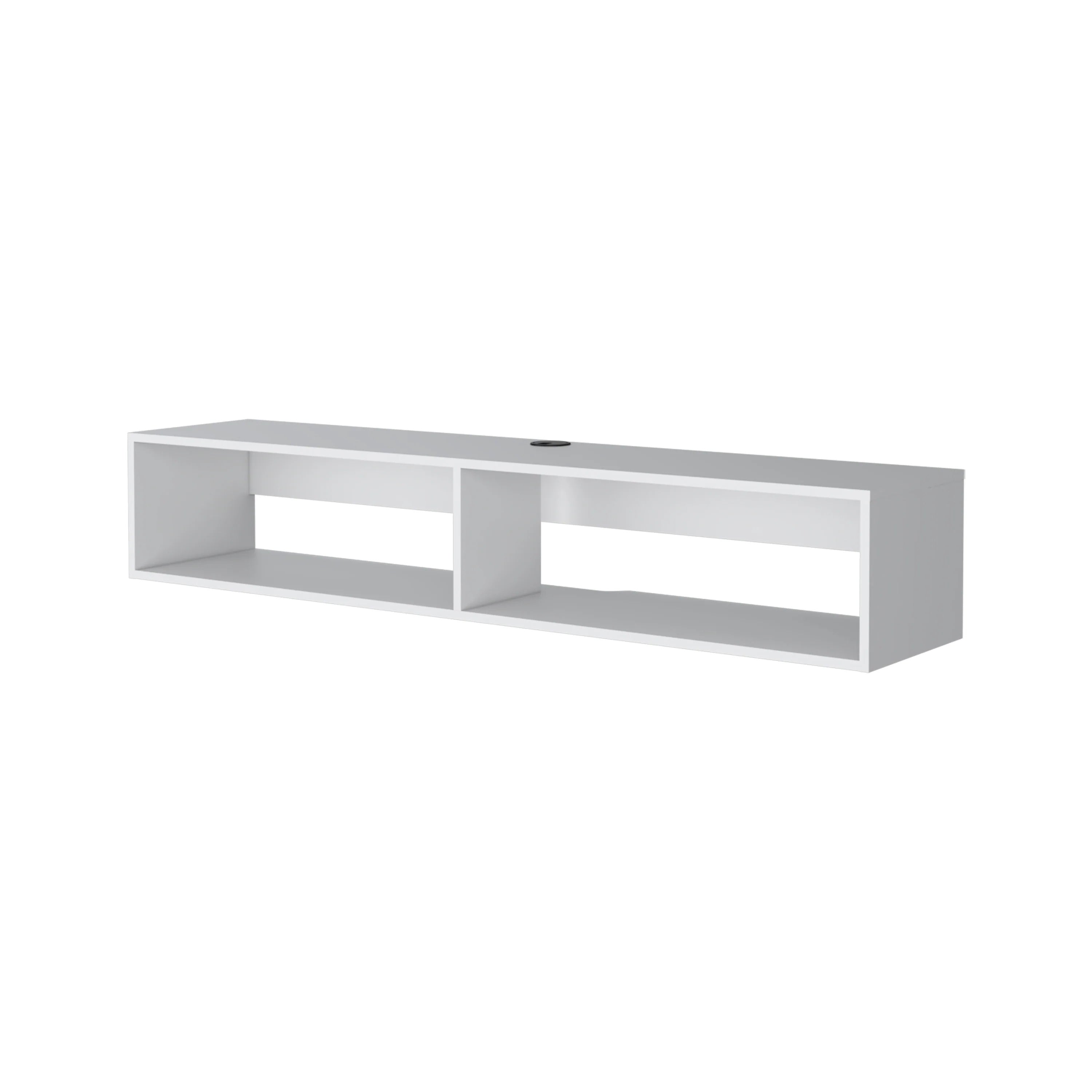 Elevate your entertainment area with a clean, modern floating media rack that combines sturdy construction and space-saving design. This white two-shelf unit offers ample storage for media components and décor while keeping your floor clear and your TV positioned at a comfortable viewing height — an ideal choice for contemporary living rooms, apartments, or media rooms.