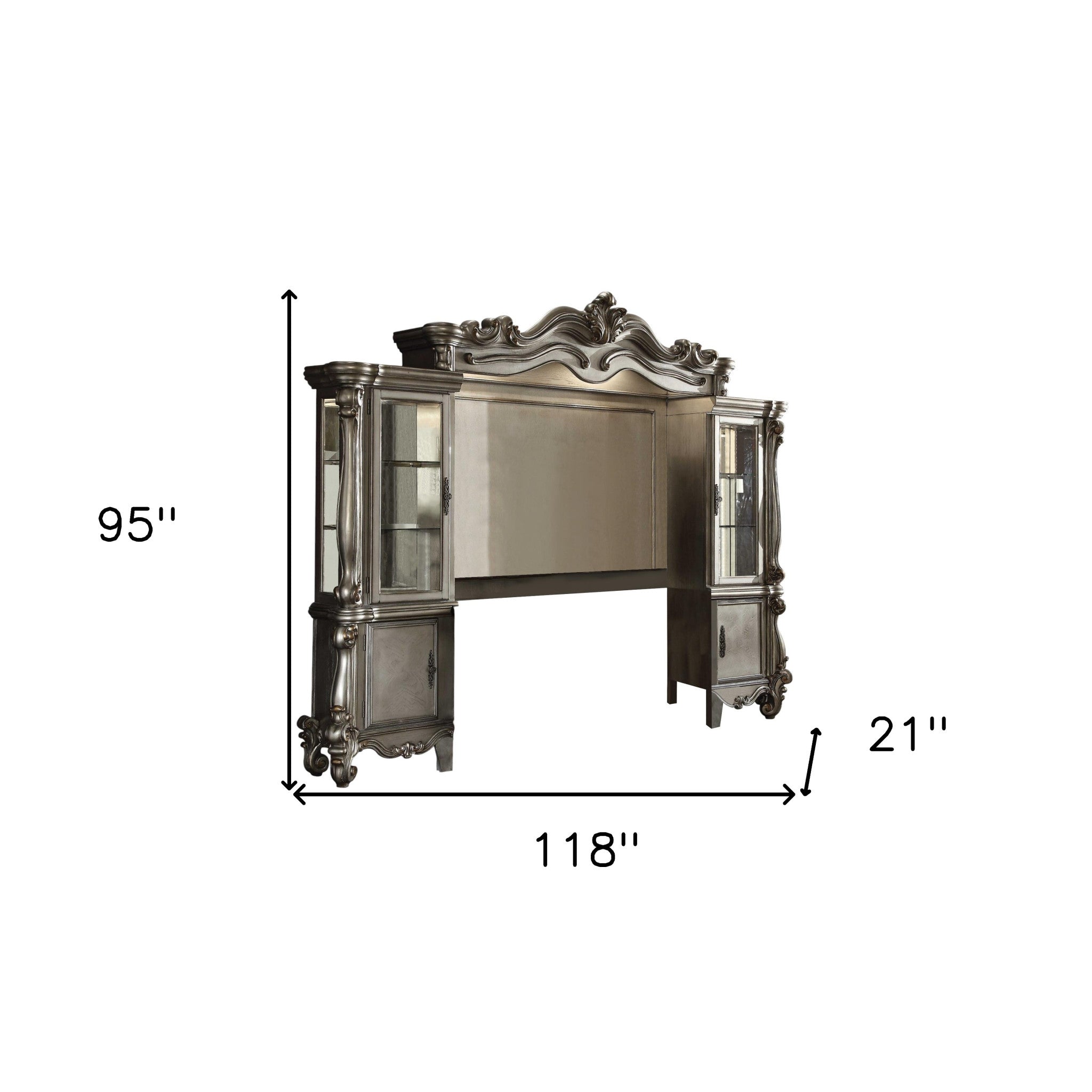 - entertainment center TV stand with 2 cabinets and 4 interior shelves in platinum solid wood.