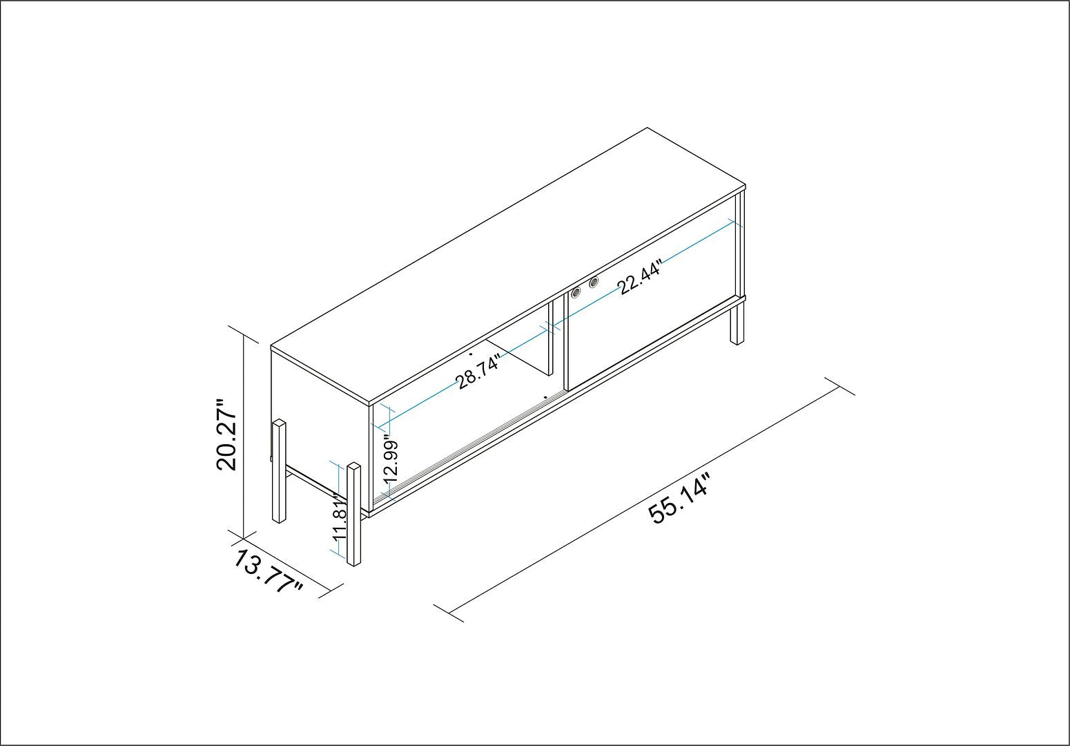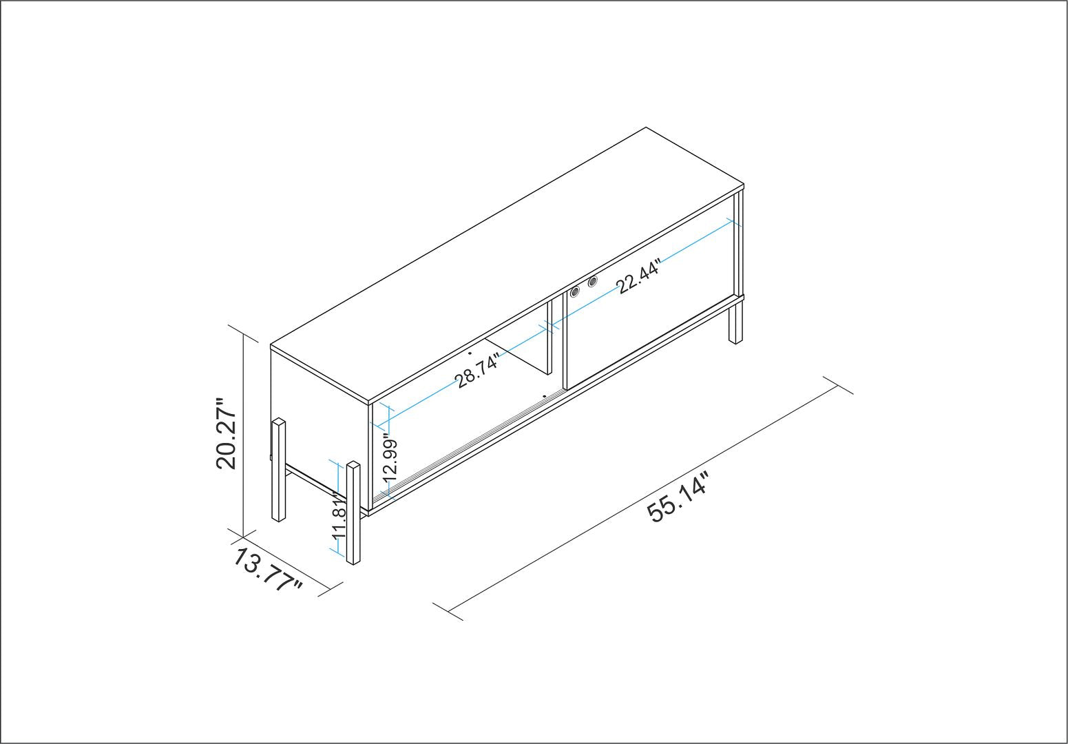 - Upon Assembly, Measures: 55.14 in. Length, 20.27 in. Height, 13.77 in Depth.