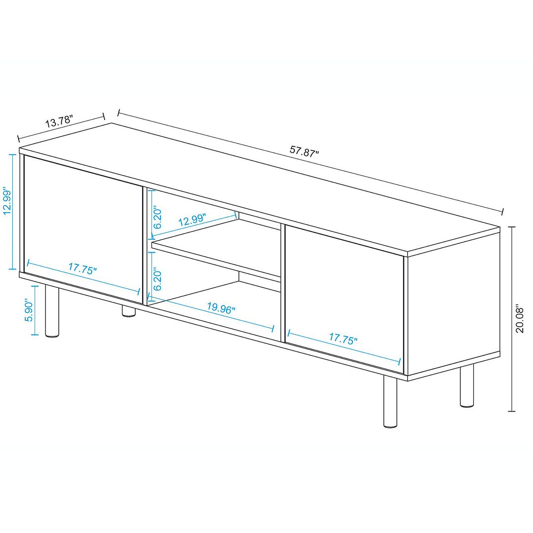 - Upon Assembly, Dimension Measures: 57.87L x 20.08H x 13.78D.