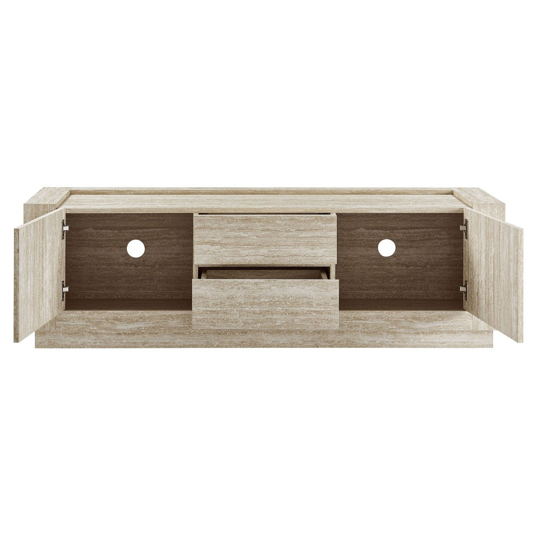 - 59 Inch TV Stand Travertine Laminate 2 Doors 2 Drawers Plinth Base Non-marking Foot Pads Assembly Required