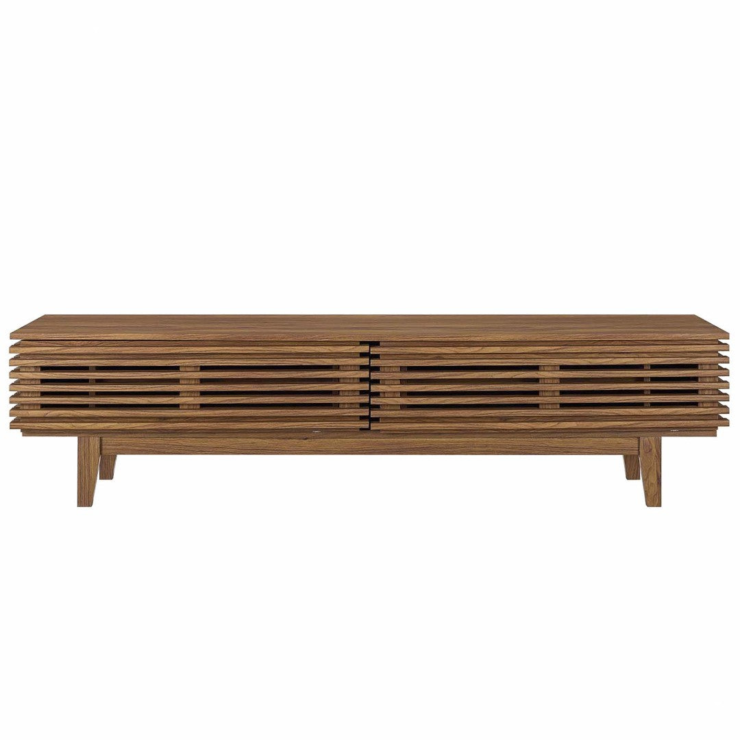 Elevate your living room with the Render TV Stand, a mid-century modern piece that combines warm walnut tones with practical media storage. Designed for both style and function, this stand offers versatile shelving, concealed compartments, and thoughtful cable management to keep your entertainment area organized and visually appealing. Its sturdy construction and tapered wood legs deliver lasting support while complementing a variety of décor styles.