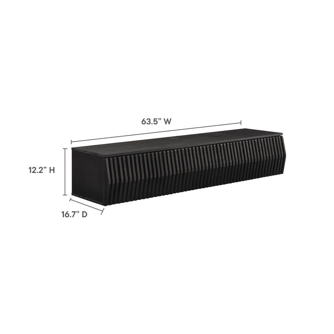 - Product dimensions: Overall 16.5" L x 63.5" W x 12" H — slim, low-profile floating cabinet suitable for most wall-mounted TV setups