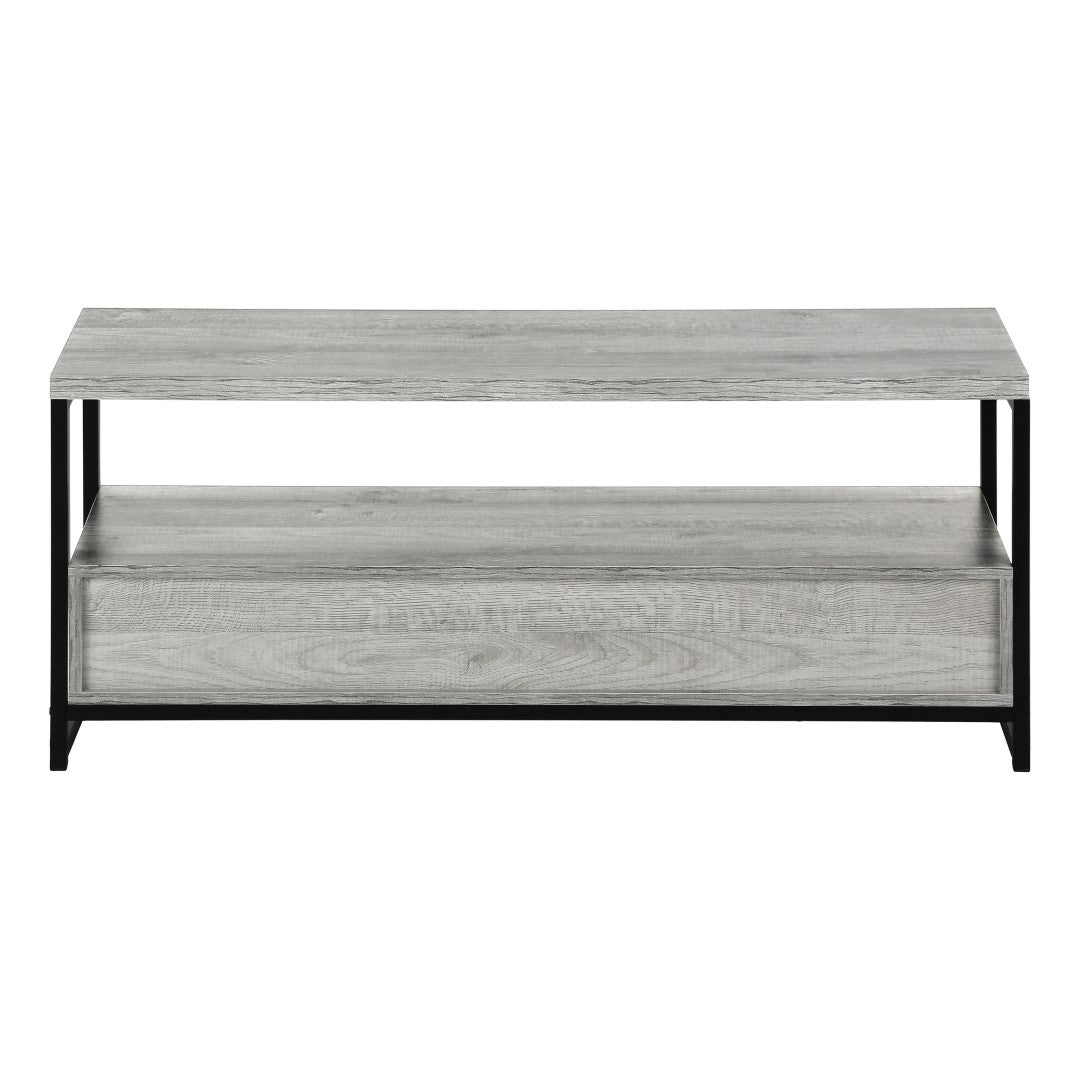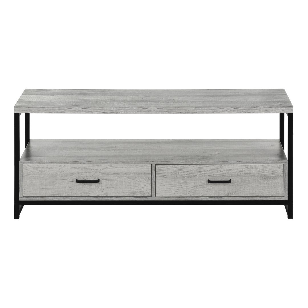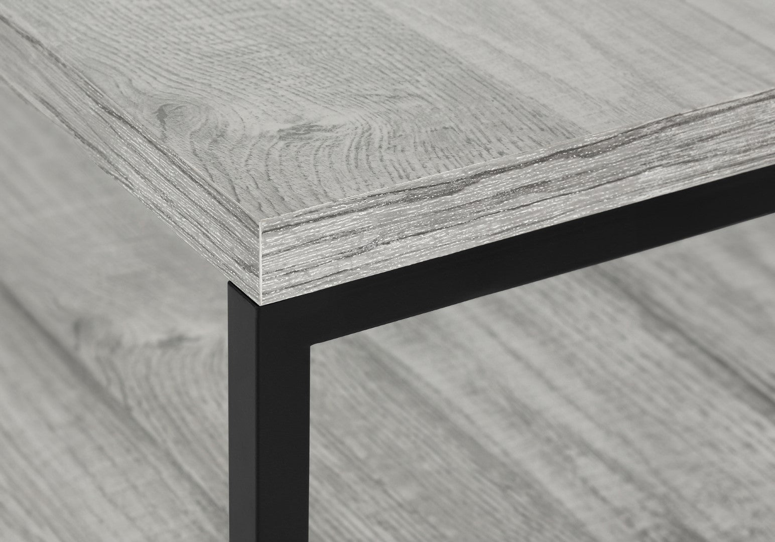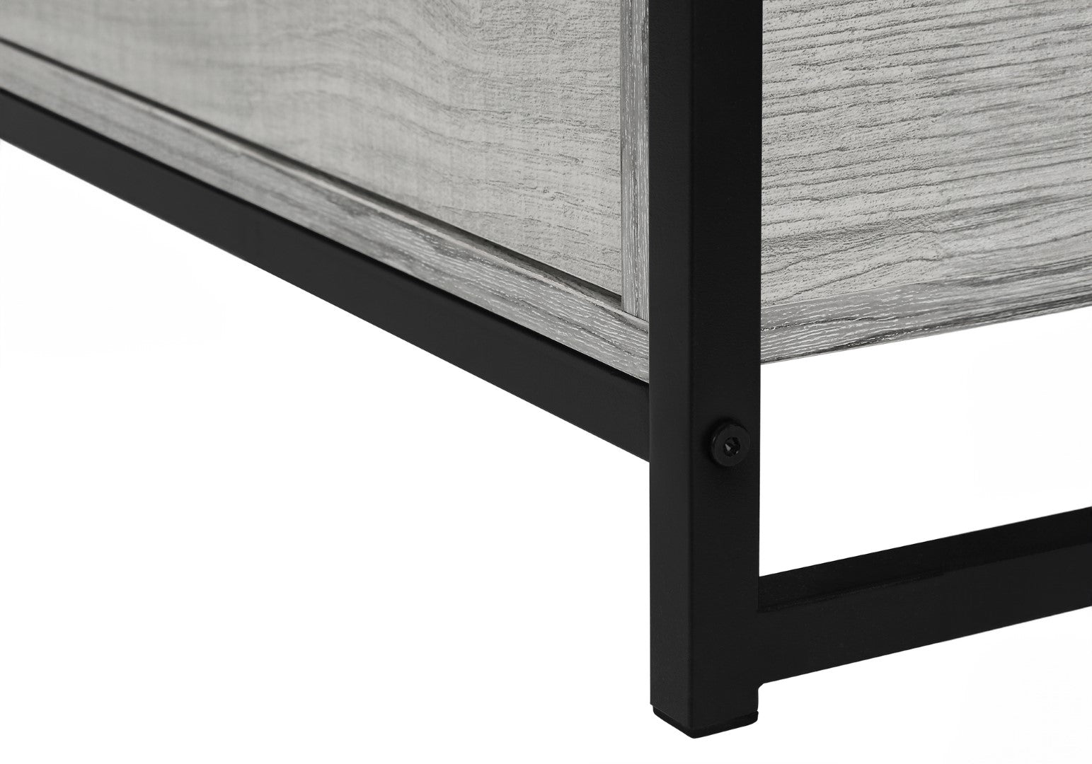 - Contemporary, industrial-inspired design finished in a grey wood-look finish