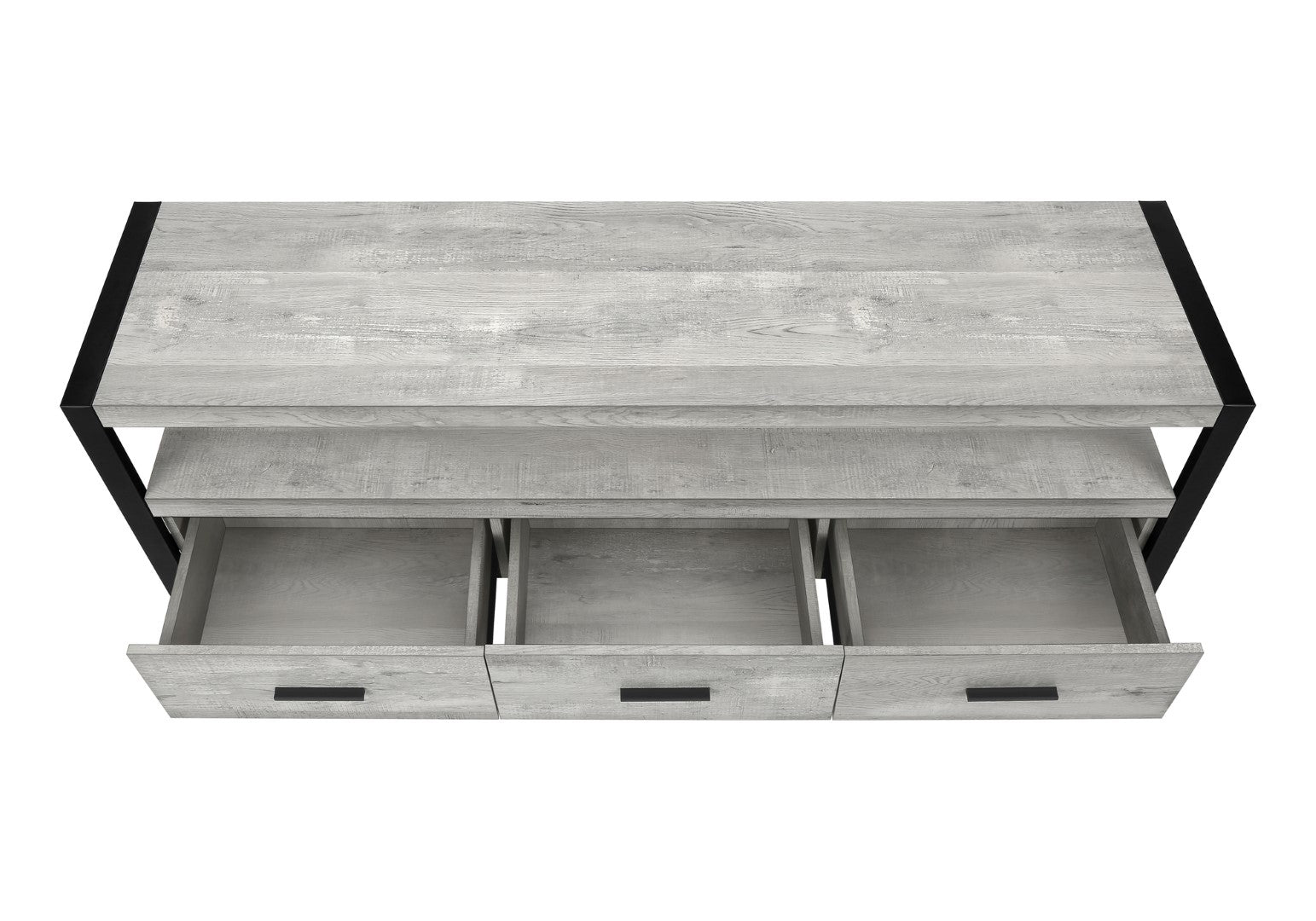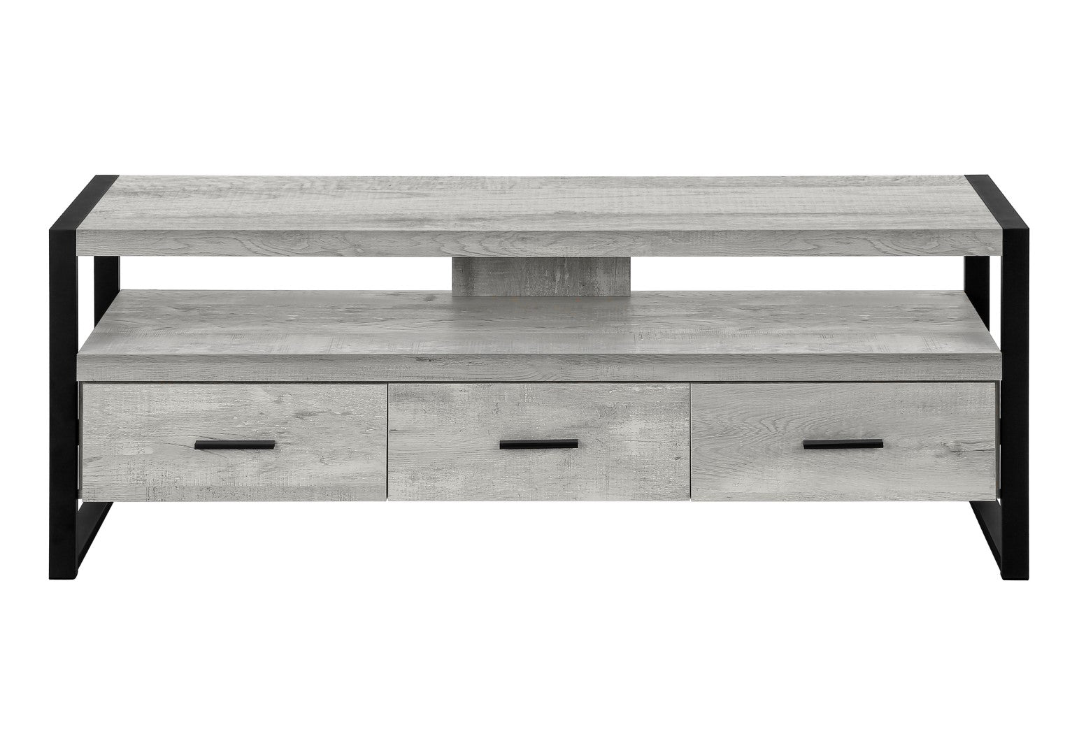 - Contemporary, industrial-inspired design finished in a rustic grey reclaimed-look