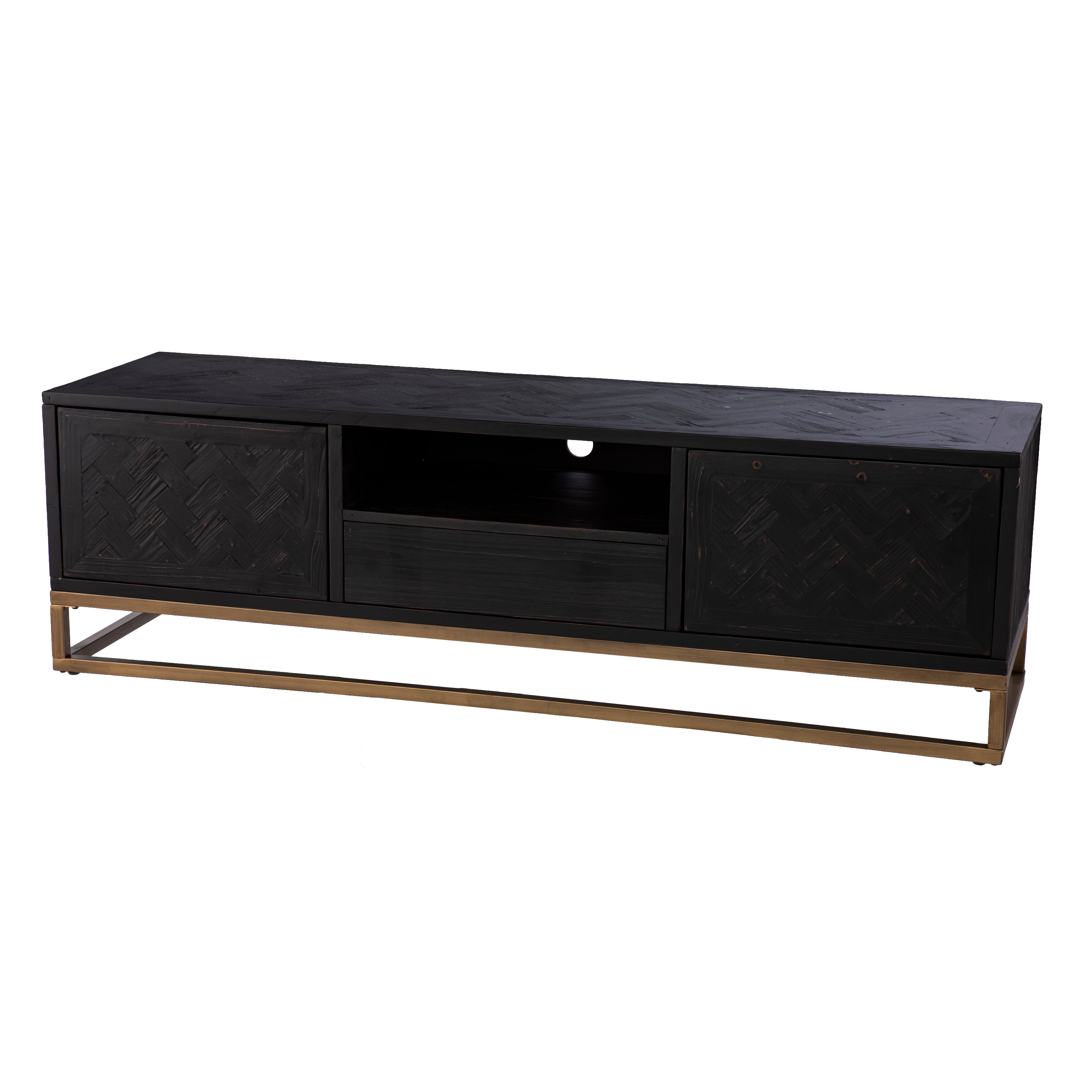 - Finish: Black stained reclaimed wood w/ antique gold finish
