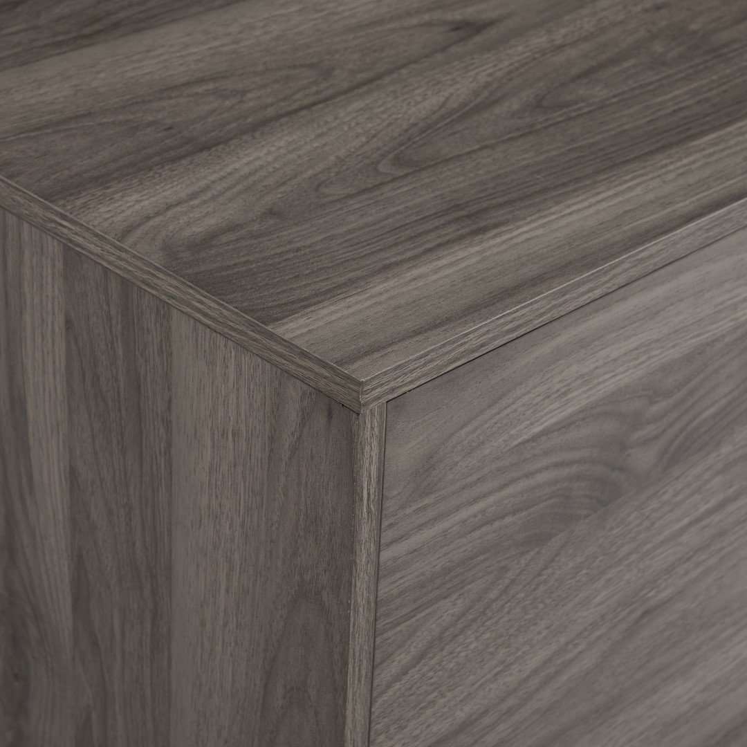 - Made of high-grade MDF with durable laminate in a wood grain finish