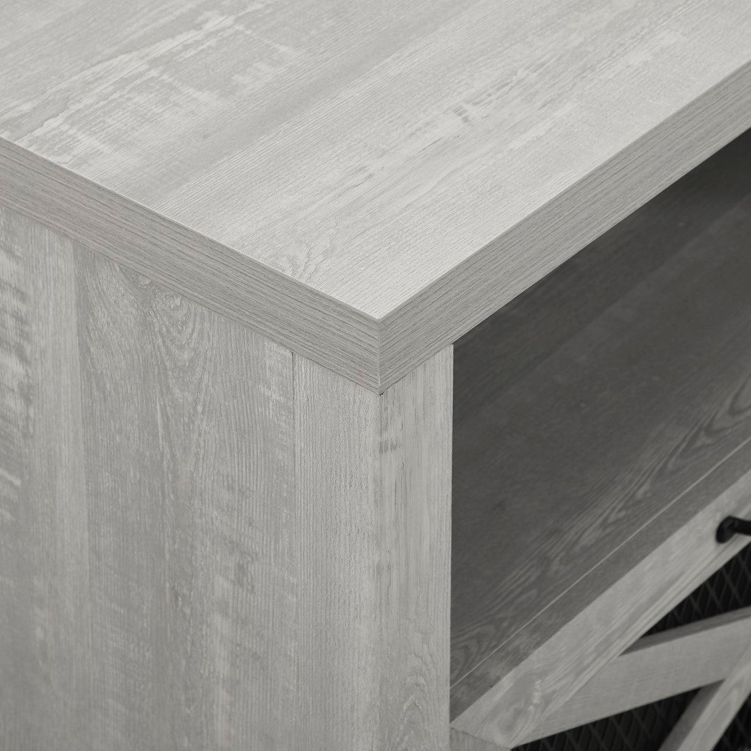 Buckle down on farmhouse charm without having to wander out to an actual barn to gather firewood thanks to the electric fireplace TV stand. The heater comes with a faux wood hearth and the ability to control the light and heat options separately on the unit so you can achieve a variety of ambiances at the flip of a switch. This rustic console with mesh metal drop door cabinets includes cord management, open and closed storage, and can accommodate up to a 85” TV.