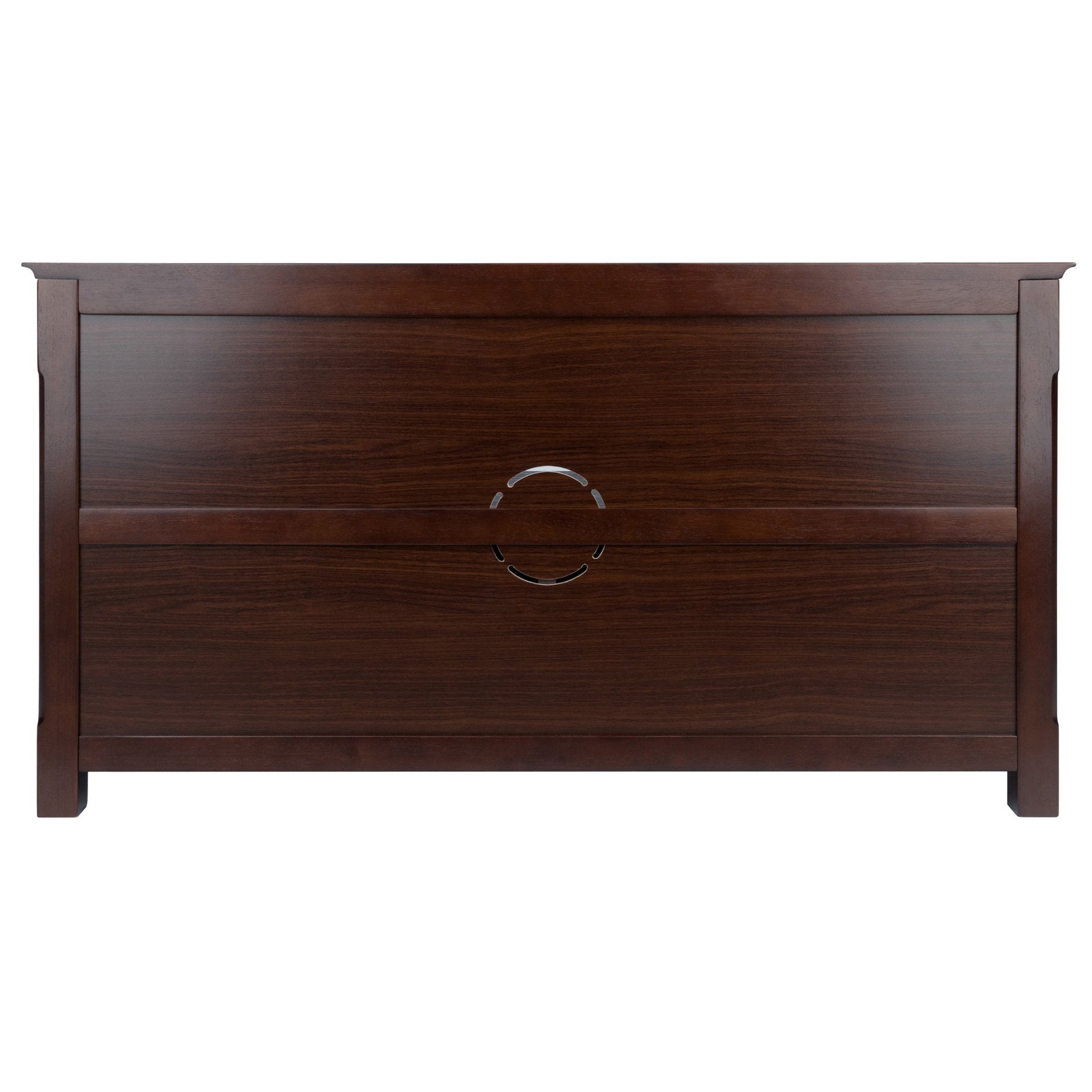 - Construction with combination of solid and composite wood in cappuccino finish. Assembly required.