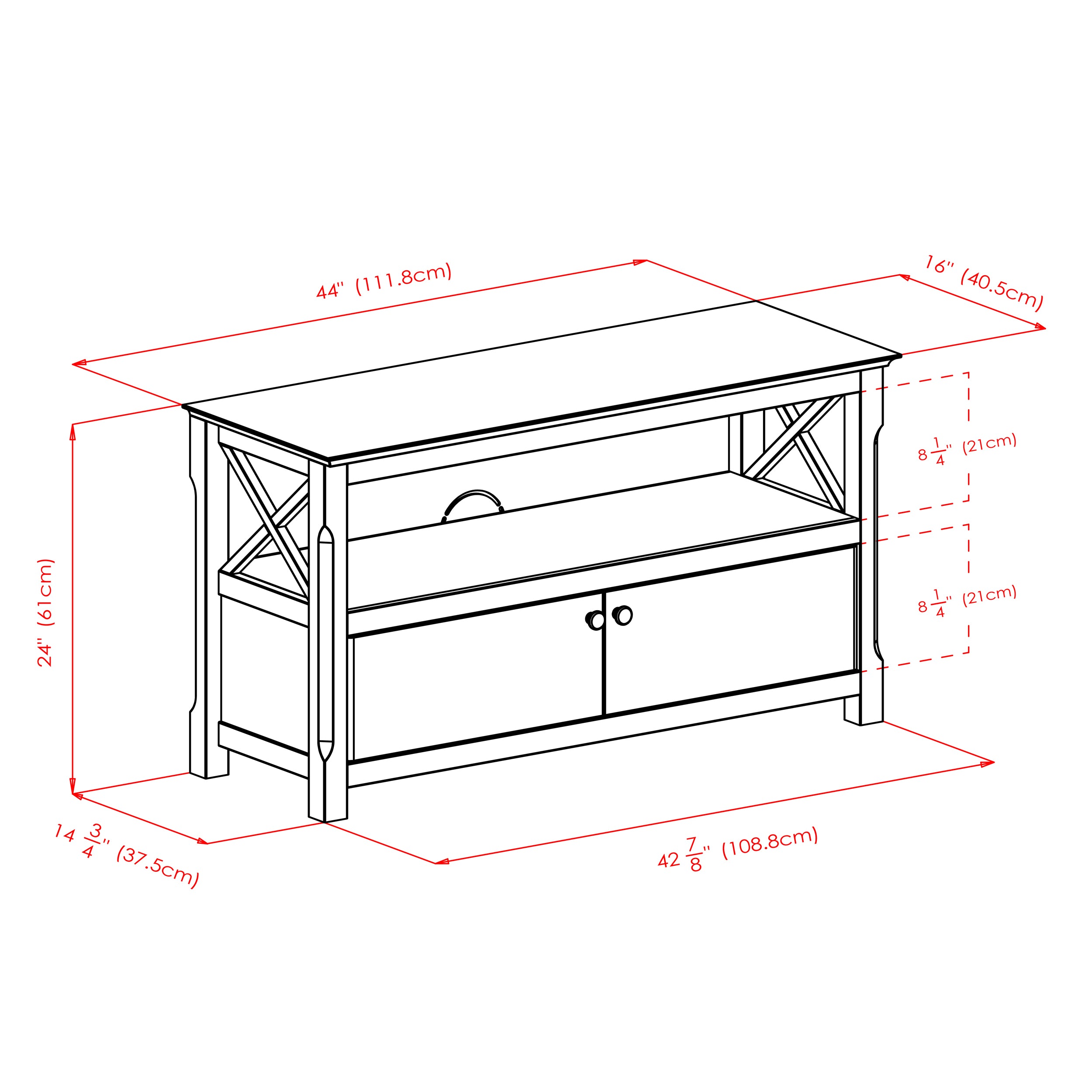 - Overall size is 44"W x 15.9"D x 24"H. Open storage section is 39.2"W x 14.3"D x 8.2"H