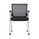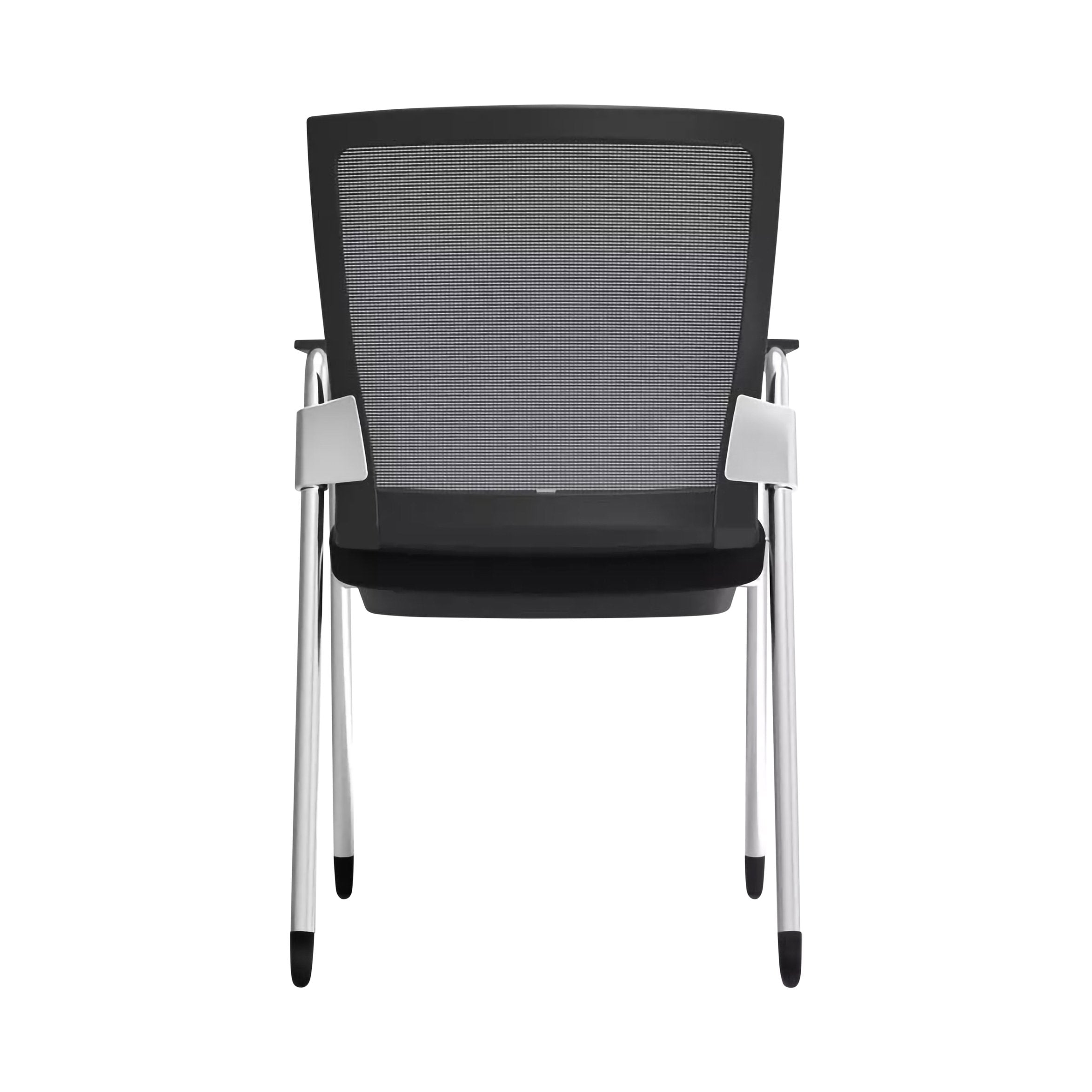 - Mesh back Fabric seat over foam seat cushion Nylon back frame Chromed steel legs Plastic glides Stackable up to 4 units Contract grade