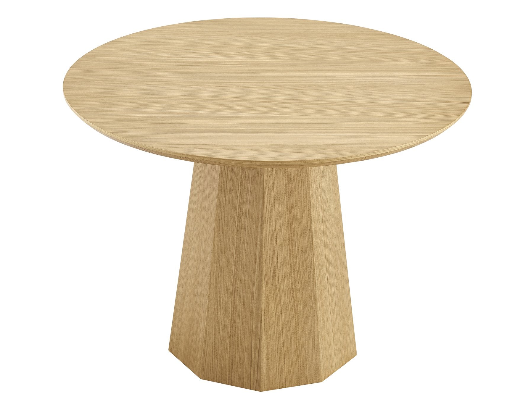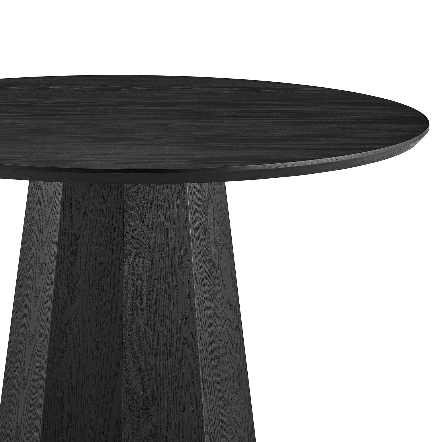 The Sidney Table blends sleek, modern design with everyday functionality. Its round top is crafted with a rich ash wood veneer, offered in either classic Black or warm Oak finish. The striking angular base adds a bold, architectural element, giving the table a sculptural presence that complements a variety of interior styles—from contemporary to transitional. Felt pads are included to protect your floors and convenient minor assembly.