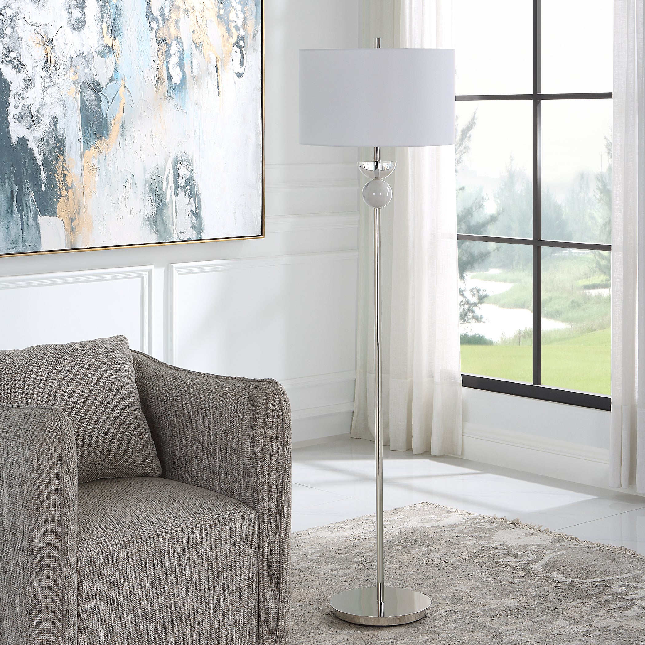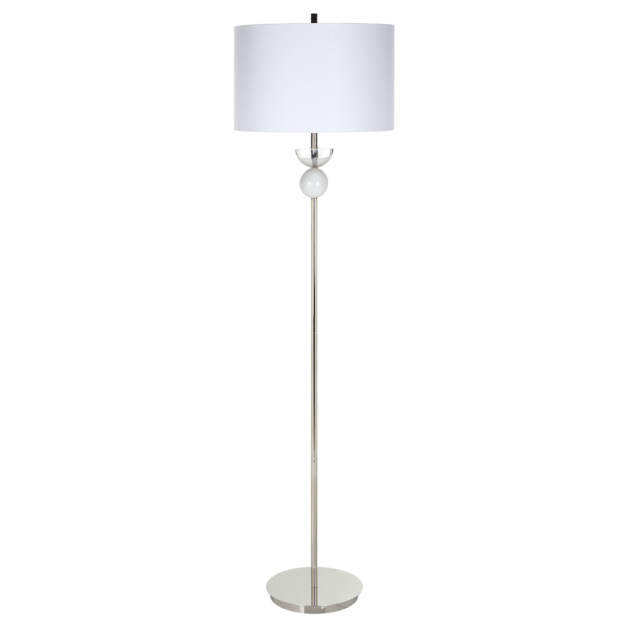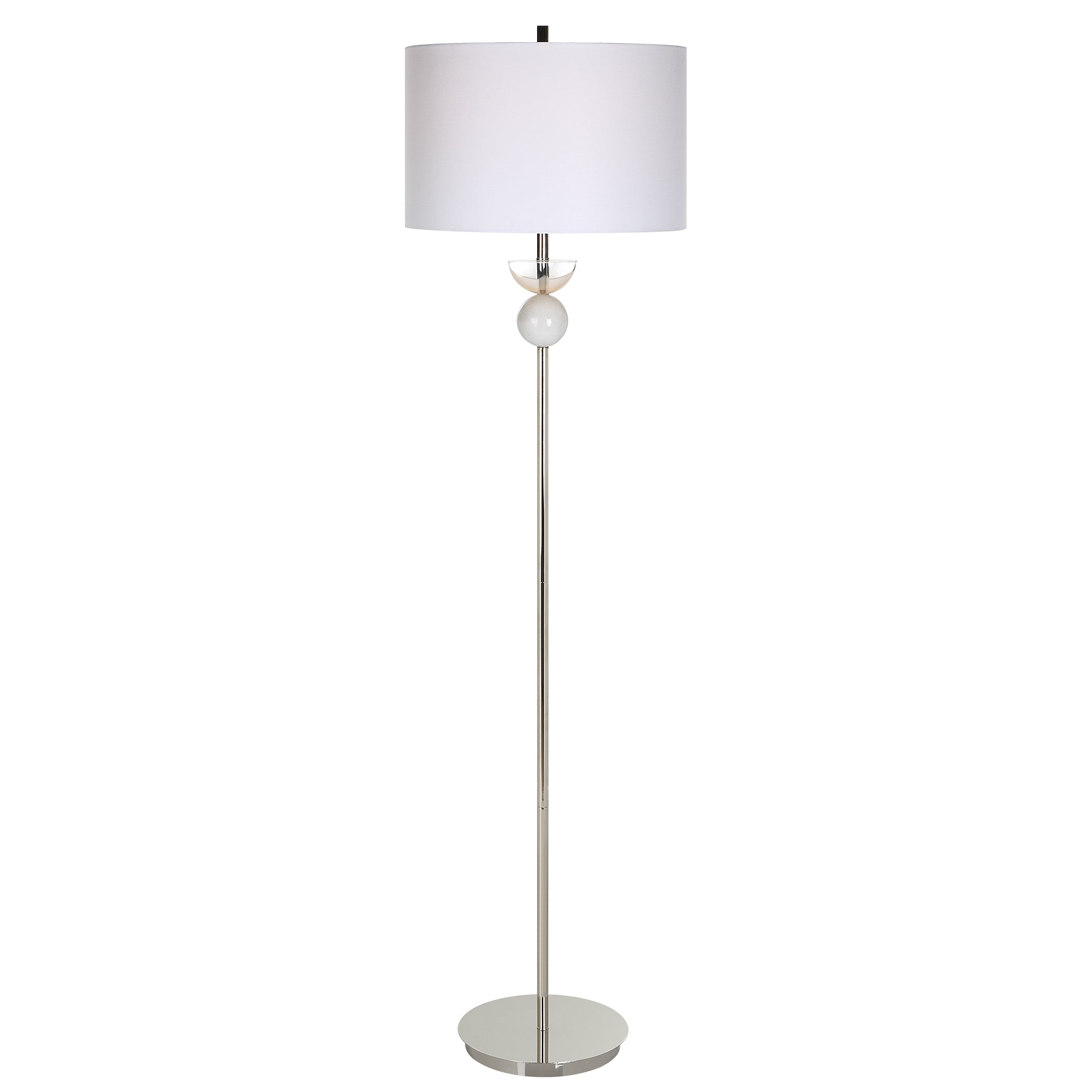 - Finish/Frame Description: Sleek And Refined, This Contemporary Floor Lamp Showcases A Streamlined Iron Base In Polished Nickel With Natural White Marble And Crystal Accents.