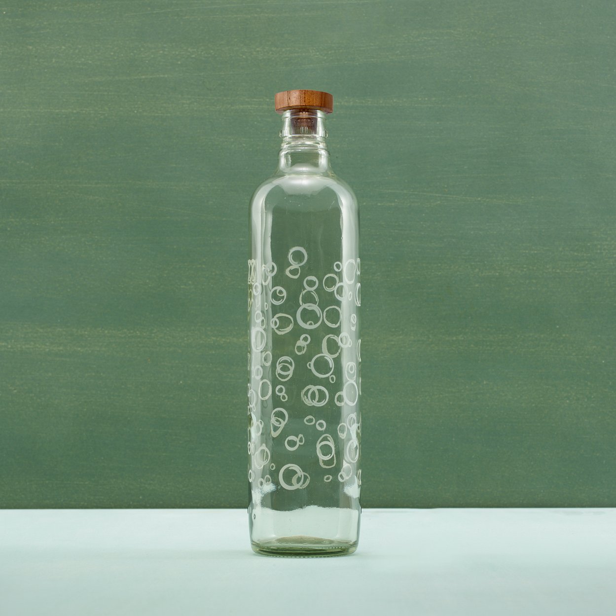 Elevate your daily hydration with this elegant Bubbles glass water bottle—combining stylish textured glass with a natural wooden stopper for a secure, eco-friendly seal. Its bubble-patterned surface provides both visual appeal and a comfortable, non-slip grip, making it a practical and attractive choice for home, office, or gifting.