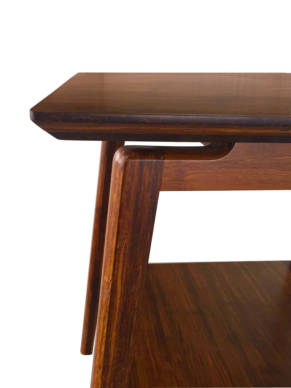 - Product Copy: A stylish small-space solution, the sculptural Antares coffee table brings the simple elegance of Mid-Century design into the modern home. Generous storage shelf for beautiful display. Crafted in 100% solid Moso bamboo with the character, beauty, strength and feel of a truly one-of-a-kind, tropical hardwood. Greenington combines beautiful design, rich color, and a winning sustainability story.