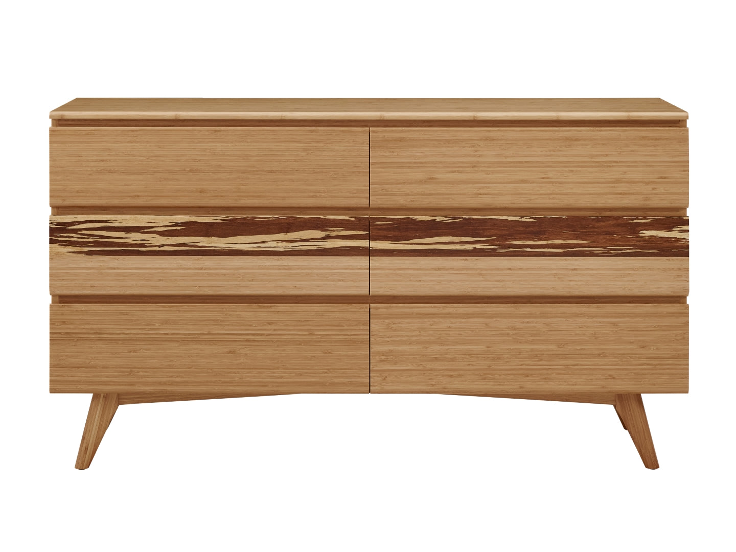 - Product Copy: Showcasing the beautiful color and grain of solid bamboo, the Azara double dresser by Greenington features modern architectural lines, and stunning drawer accents in the natural beauty of exotic tiger bamboo. Beautifully finished on all four sides, the Azara dresser features include five sided drawer boxes with English dovetail, sleek recessed drawer pulls, under mount hardware and soft closing drawers. The Azara bedroom collection makes it easy for you to promote sustainability in a lovely, classic and functional way in your home.