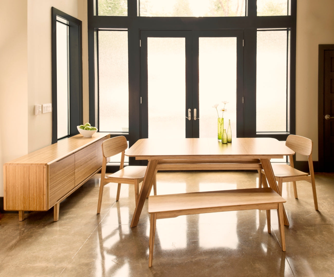 - Product Copy: The Currant bench brings the simple elegance of Mid-Century design into the modern home. The Currant bench is offered two sizes of benches, long and short. The tapered legs and bamboo seat showcase the beautiful color and grain of solid bamboo, and is a comfortable complement to just about any room. Available in your choice of caramelized bamboo or the rich black walnut finish.