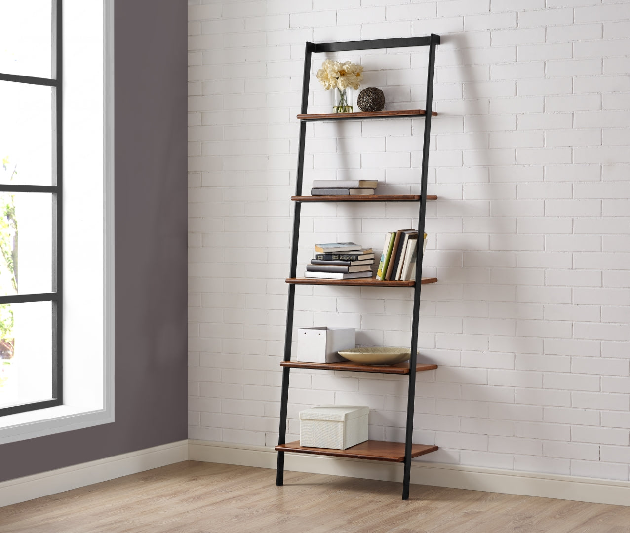 - Product Copy: Greenington’s Studio Line leaning shelf is constructed with five Exotic shelves which ladder up slim industrial supports in black powder coat steel. Crafted in exotic bamboo with the character, beauty, strength and feel of a truly one-of-a-kind, tropical hardwood. The Studio Line Office Collection makes it easy for you to promote sustainability in a lovely, classic and functional way in your home.