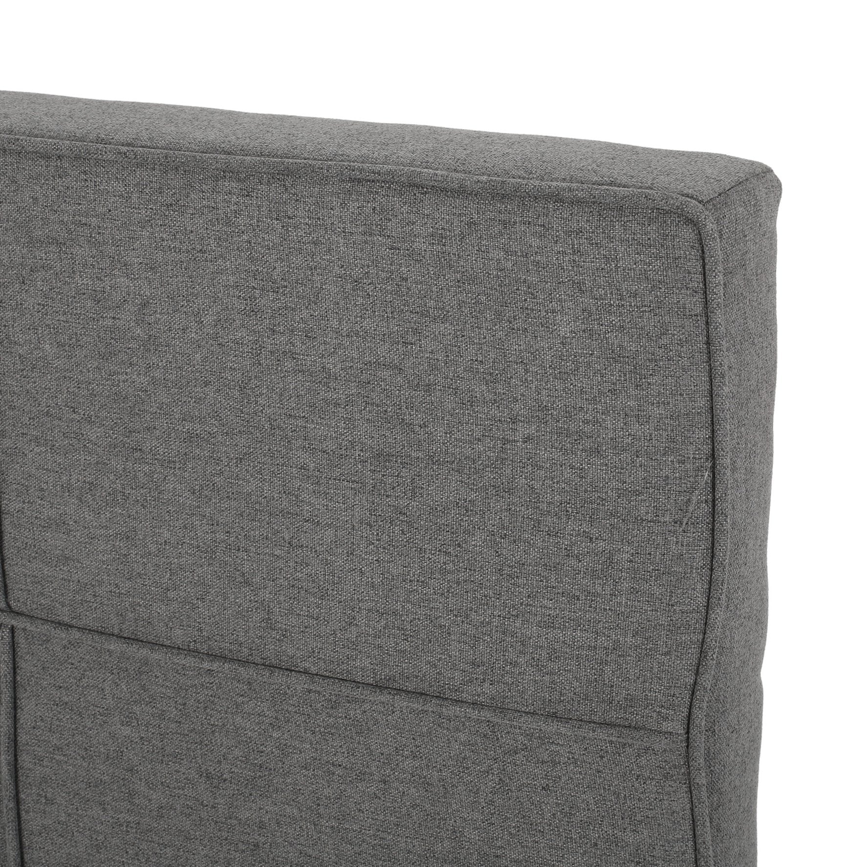 - Material: High-quality linen-like fabric upholstery in charcoal grey with piped edge detailing