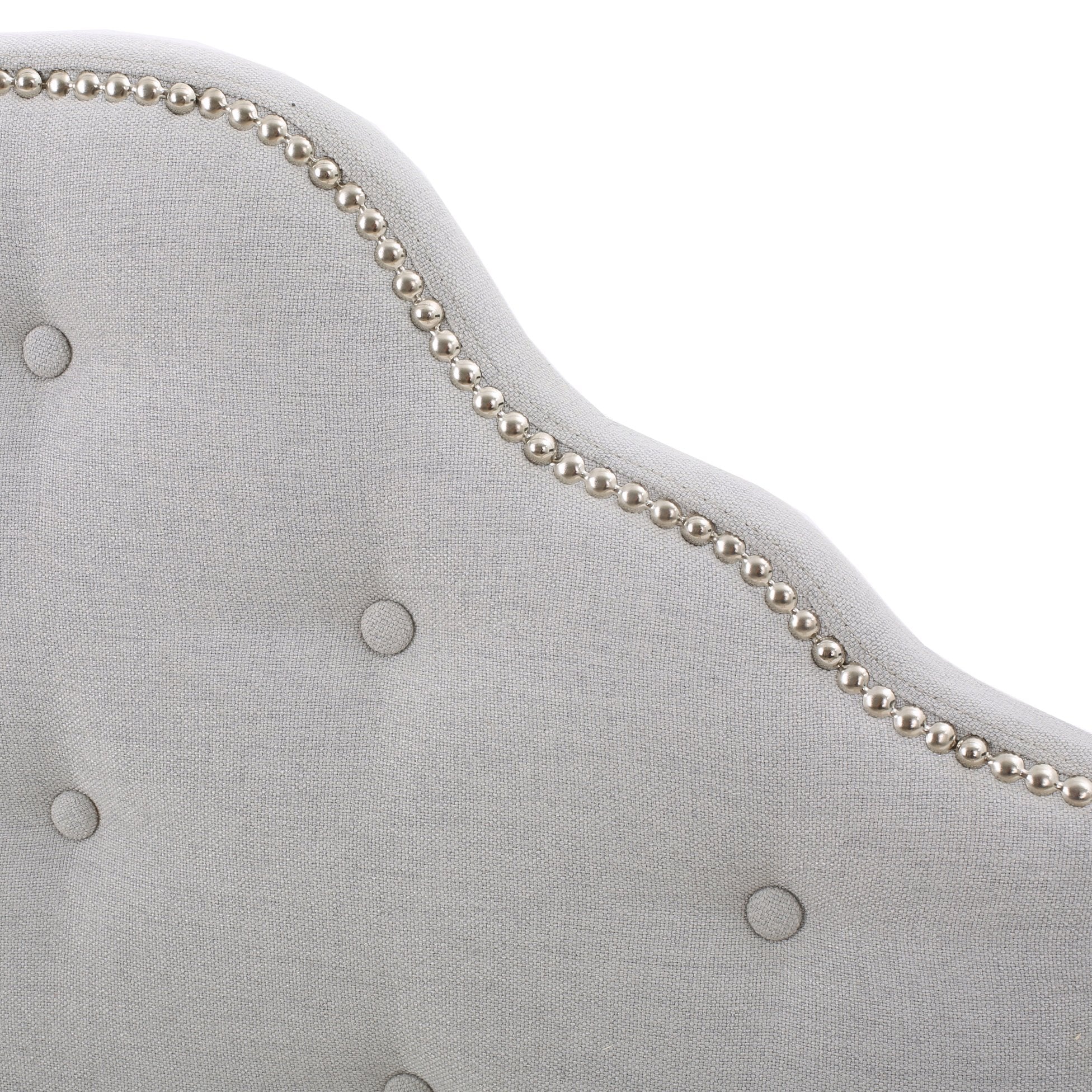 Add an instant focal point and a touch of refined comfort to your bedroom with this modern button-tufted upholstered headboard. Designed to blend contemporary elegance with everyday durability, it features a plush, linen-like fabric, tasteful nailhead trim, and adjustable metal legs that make installation quick and adaptable to your bed frame and mattress height.
