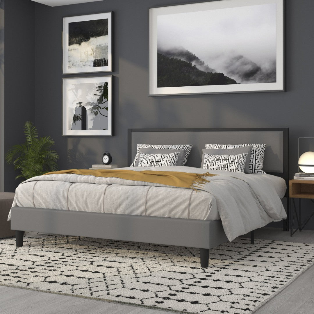 - Contemporary Style Panel Upholstered Headboard with Classic Metal Framework