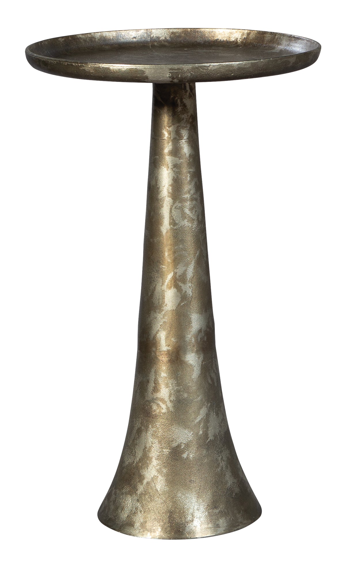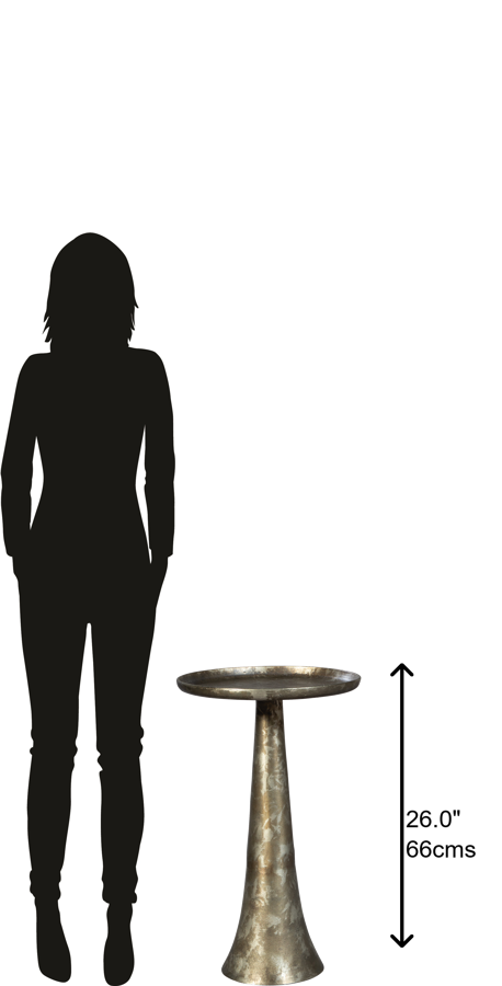 Table made of cast aluminum with a burnished nickel finish.