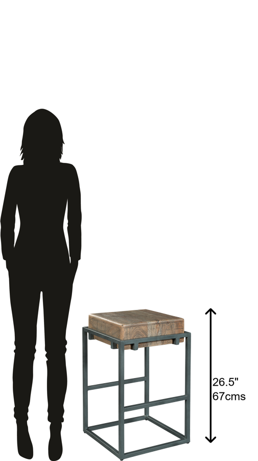 - Table consists of a solid acacia box cradled in an iron leg frame.