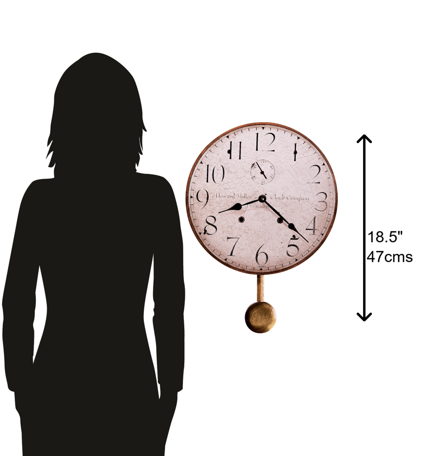 - and focused on the future. This Moment in Time clock is authentic to the first timepieces that Howard Miller produced. Hang this antique wall clock in any room for a truly old-world look. Rustic Details: This rustic wall clock features antique dials that are carefully mounted on laser cut, . 25 inch thick panel bases. Additionally, this wall clock features antique black hands and a quartz movement. The look is completed with an antiqued pendulum extending 5 inches beneath the dial. Modern Operation: While rustic in styling, this clock utilizes quartz, battery-operated movement and requires two AA sized batteries (not included). The entire antique wall clock was designed and assembled in the USA. Howard Miller: Founded in 1926 and still family-owned in its third generation, Howard Miller is the world&rsquo