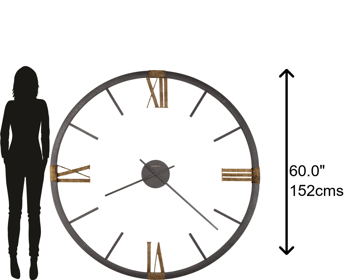 - Dramatic features and an oversized style make the Howard Miller Prospect Park the ideal metal oversized wall clock for the homeowner in need of a new decorative touch. Far more than simply there to tell the time, this modern wall clock will become a central statement piece in any room. Textured Frame: This dramatic oversized wall clock features a textured metallic charcoal frame. The unique texture of this modern wall clock&rsquo