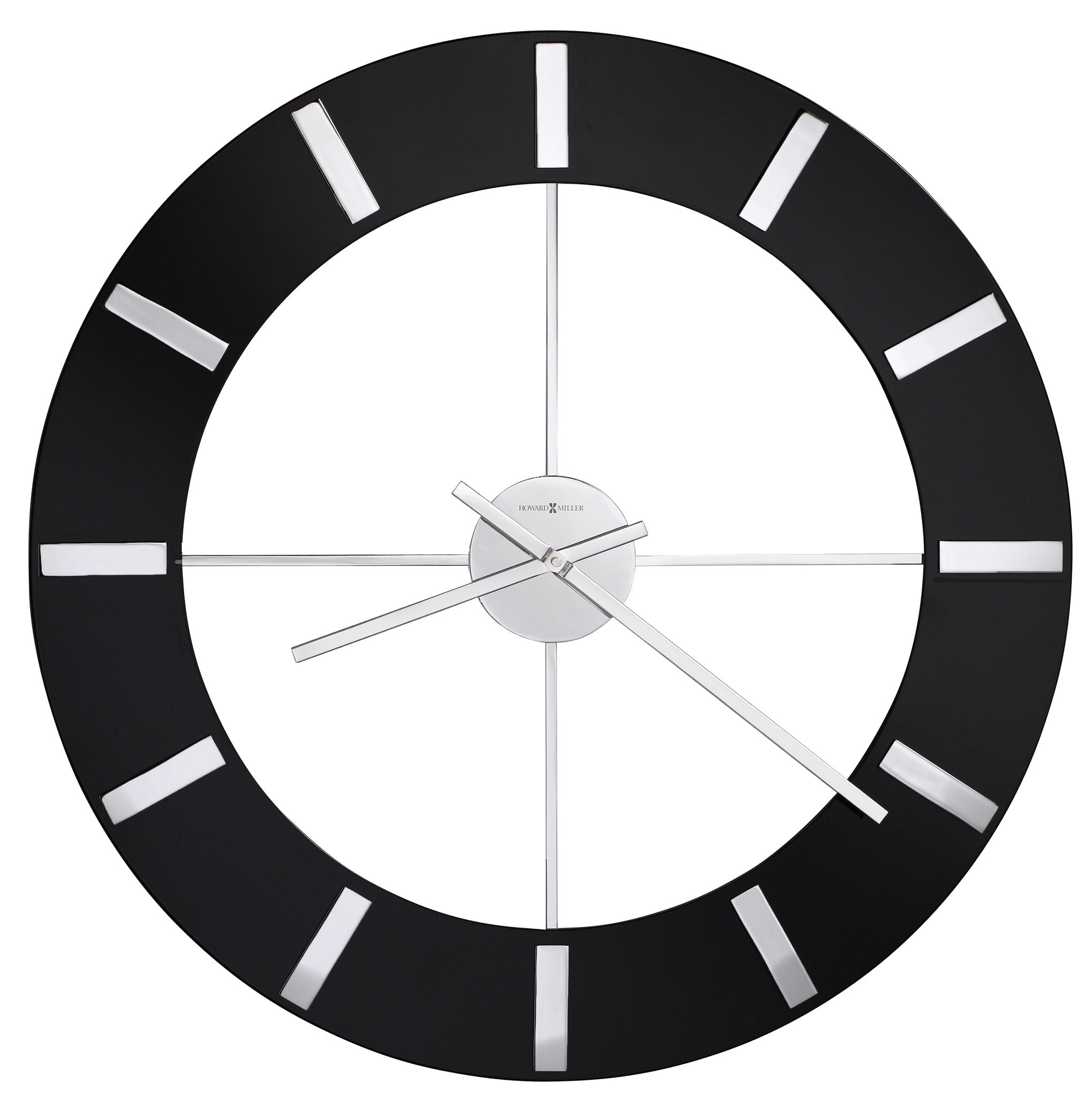 - s quartz movement makes a soft ticking noise without the use of chimes for a quieter environment. DURABLE: This oversized, indoor modern clock is created to last. It has a sturdy frame to relieve stress in a busy household. Display it in your kitchen, office, bathroom, bedroom, living room, and more. HIGH QUALITY: The circle design will ensure you can read the time anywhere in the room. Easily tell time with chrome-finished hands and bold stainless-steel hour markers to stand out on the high-gloss ring with polished chrome-finished center disk and crossbars. MOVEMENT: It is powered by quartz movement and requires one AA sized battery. Natural blemishes are normal on this highly polished and reflective metal finish. HOWARD MILLER: Founded in 1926 and still family-owned in its third generation, Howard Miller is the world&rsquo
