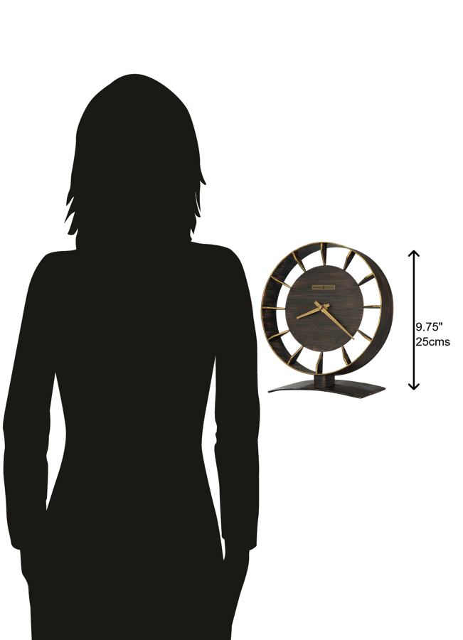 - s a statement of style. Inspired by the beauty of found or stamped metals, it is truly a work of art. Unique Style: This antique mantel clock features modern facets alongside traditional aspects with its curved base and circular and wedged metal shapes, which make for the hour markers. The clock is finished in brown with reddish undertones and gold highlights on the front of the frame and the hour markers, contrasted with the hour and minute hands in an antique gold finish. The dial is supported by a flat center disk that is joined to the outer case with the wedged metal hour markers. Quartz Movement: Quartz, battery-operated movement requires one AA sized battery, which is not included. Howard Miller: Founded in 1926 and still family-owned in its third generation, Howard Miller is the world&rsquo