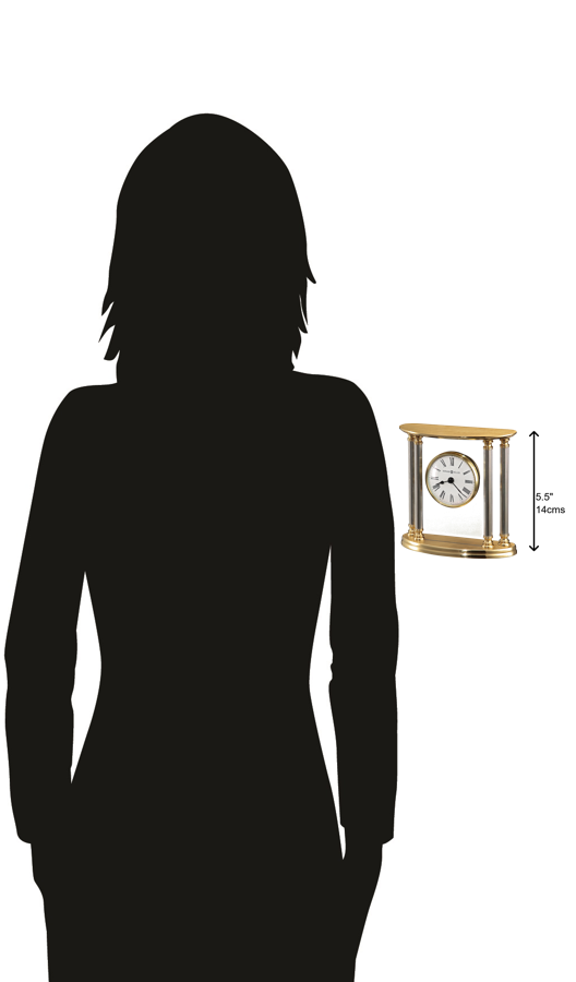 - The New Orleans brass table clock features a blend of silver-tone accents and solid brass. Its elegant design and distinctive shape make it a distinguishable timepiece with a look wholly its own. Solid Brass: This distinctively shaped, solid brass table clock, features polished, silver-tone accents and is palladium plated. With a long, tall body and a classic pillar design, this clock is a classic piece, pairing well in any home. Roman Numerals: Featuring a white dial with glass crystal features, black Roman numerals, and black hands, the New Orleans brass table clock offers a perfect blend of wood, gold, and black and white. Tabletop Protection: This clock offers a felt bottom to protect fine desks, making it the perfect choice for any desktop style. Presentation Box: The New Orleans brass table clock comes in elegant, black velvet, double-hinged presentation box, providing an extra distinguished touch. Quartz Movement: This clock features a quartz movement and requires one N size battery. Backed by the Howard Miller name, this clock will operate reliably, offering practicality in design. Howard Miller: Founded in 1926 and still family-owned in its third generation, Howard Miller is the world&rsquo