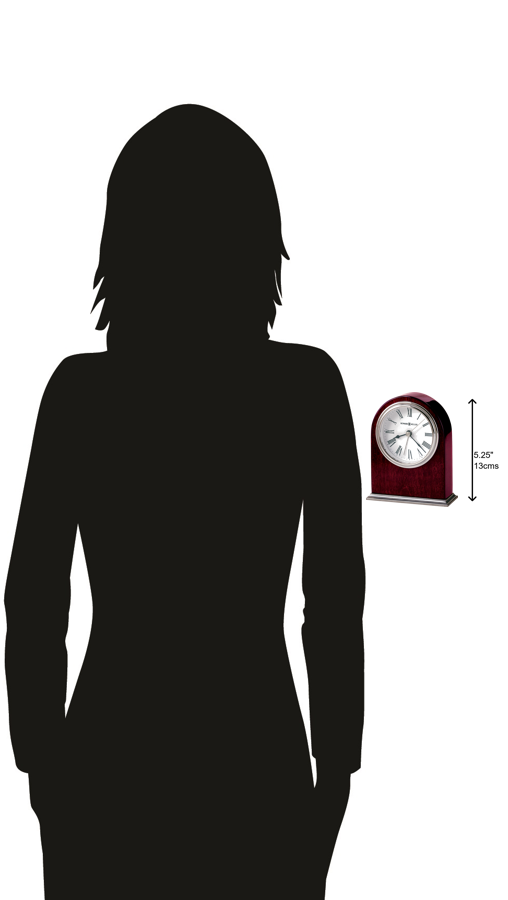 - Simplicity is paired with premium materials in the design of this stunning alarm clock. With an arched body and a timeless style, this is the perfect wood table clock to add to any home or office. Careful Craftsmanship: Known for their premium craftsmanship, Howard Miller delivers with the beautiful materials utilized in the creation of this traditional table clock. The alarm clock is finished in high-gloss Rosewood Hall on select hardwoods and veneers, creating a timeless piece. Detailed Design: No detail was overlooked in the design of this piece. This table alarm clock features an arched shaped body and is equipped with a nickel-finished metal base. The white dial of the wood table clock features a polished nickel finished waterfall bezel. Additionally, the clock is equipped with black numerals and hands, silver second and alarm hands, and a glass crystal front. Quartz Movement: Utilizing quartz movement, this wood table clock requires one AA size battery. Howard Miller: Founded in 1926 and still family-owned in its third generation, Howard Miller is the world&rsquo