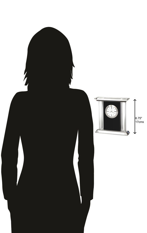 Classic Roman Numerals: The white dial of this crystal table clock has black hour markers and Roman numerals, which impart a traditional sophistication to your space. A silver-tone bezel surrounds the dial and adds a high-end touch to this functional accent item.