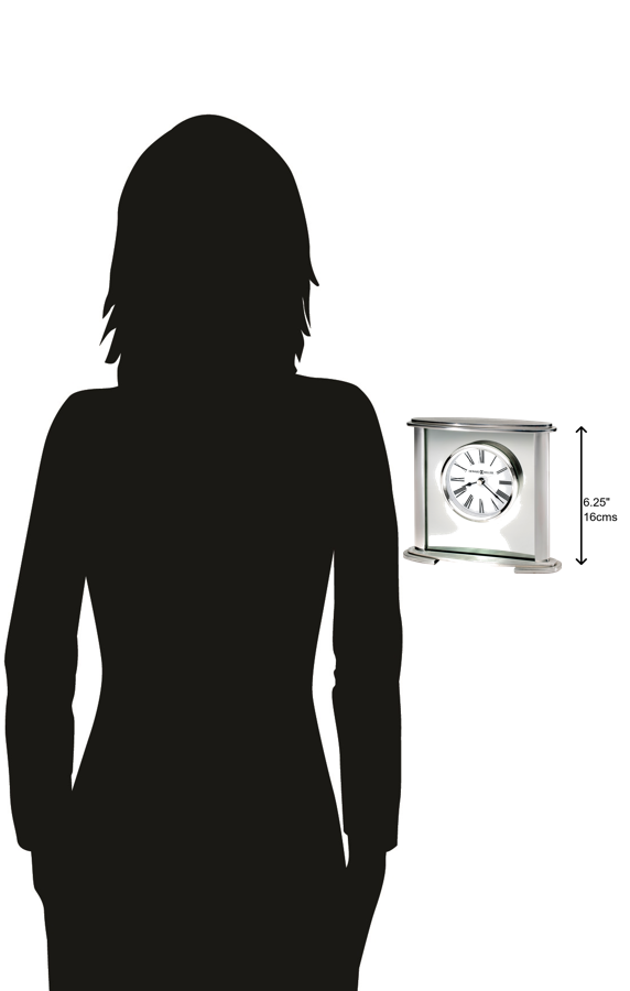 - s movement makes a soft ticking noise without the use of chimes for a quieter environment. DURABLE: This indoor modern clock is created to last. It has a sturdy frame to relieve stress in a busy household. A felt bottom will protect your desk or tabletop. Display it in your kitchen, office, bathroom, bedroom, living room, and more. HIGH QUALITY: The classic design is a home essential. Easily tell time with black Roman numerals, black hands, silver second hand, glass crystal, and polished silver-tone bezel to stand out over a white dial. MOVEMENT: It is powered by quartz movement, and requires one AA sized battery. The traditional Roman numerals feature IIII instead of IV. HOWARD MILLER: Founded in 1926 and still family-owned in its third generation, Howard Miller is the world&rsquo