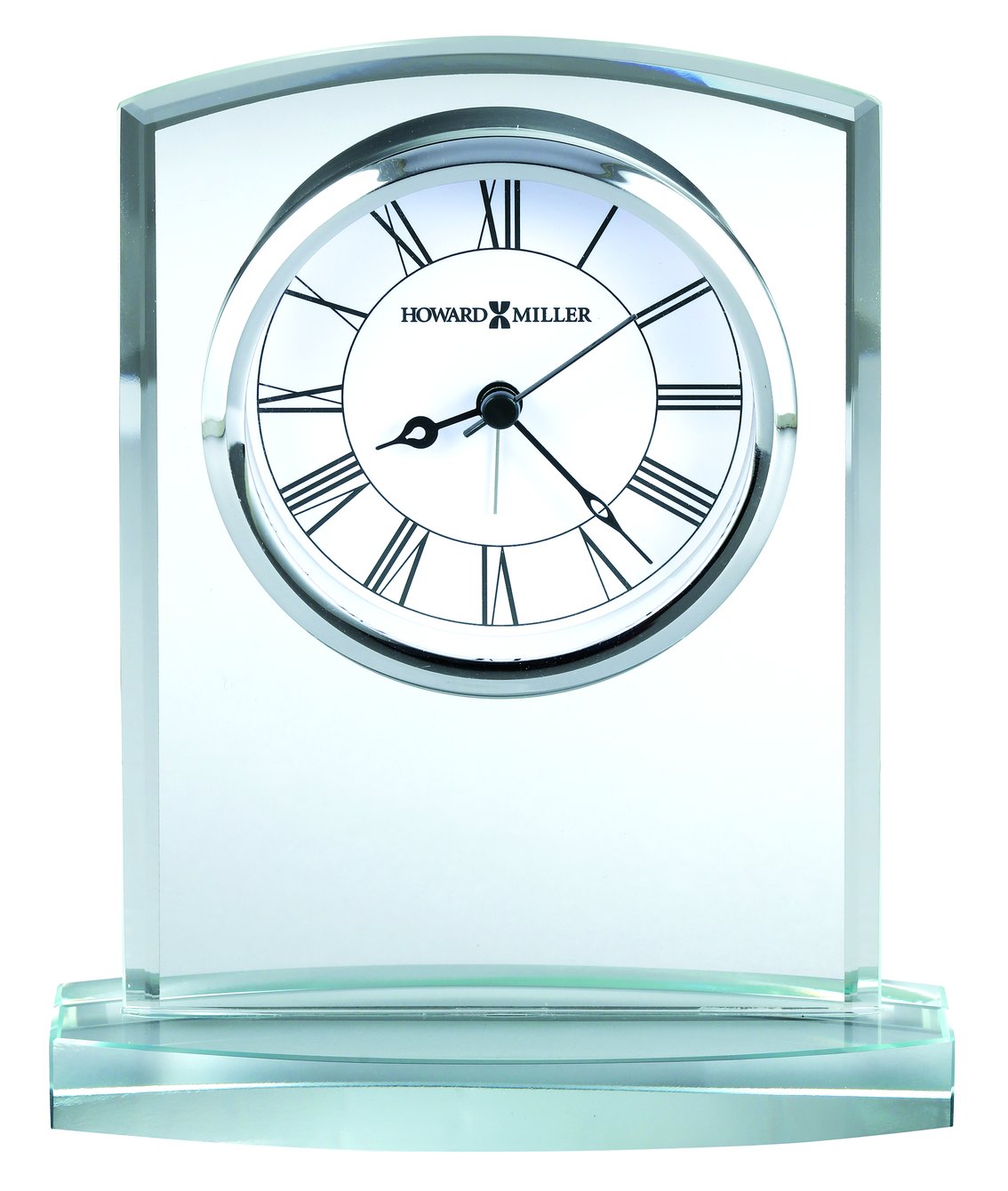 - s as startlingly beautiful as it is sensible. From its gently curved crown to its wide base, no detail has been spared in creating a distinctive and highly elegant clock sure to stand the test of time. Classy Crystal: The star of the show is resplendent Starphire glass, nearly as crisp and flawless as any diamond glinting in the light. A slight curve at the top of the alarm clock paves the way for mirrored, beveled edges. The entire piece rests on a sturdy Starphire crystal base, with its front and back edges gently curved to precision. At the center rests a pronounced white dial, whose black Roman numerals and black hands provide a striking contrast. The polished silver-tone bezel and silver alarm hand bring it all together, while a flat glass crystal shields the front. Quartz Movement: The clock has quartz, battery-operated movement and requires one AA sized battery. Howard Miller: Founded in 1926 and still family-owned in its third generation, Howard Miller is the world&rsquo