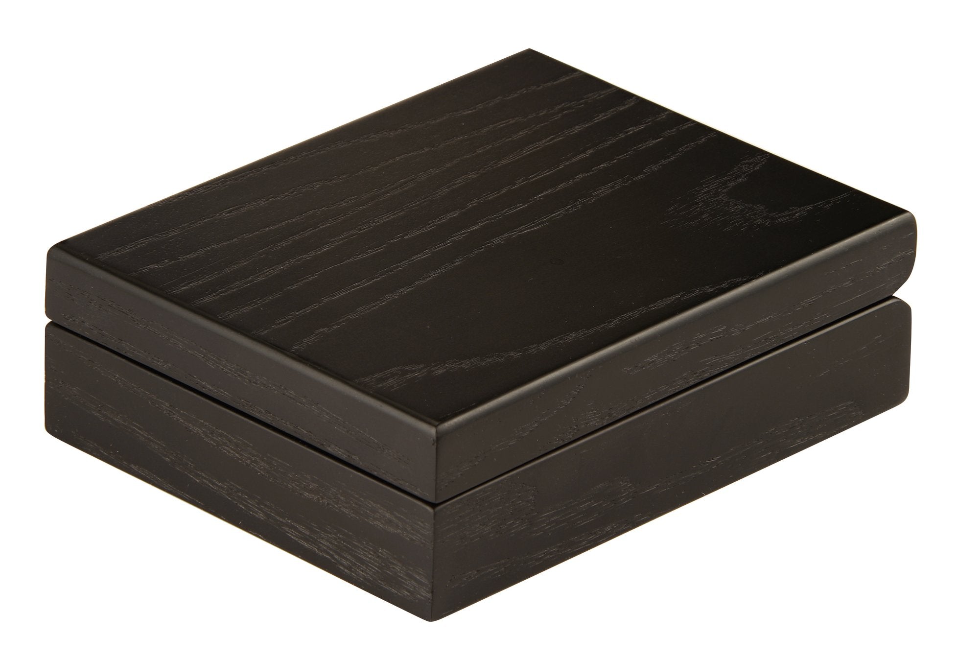 - This two-piece wine accessory kit comes in a Black Satin finished wood presentation box with silver hinges.