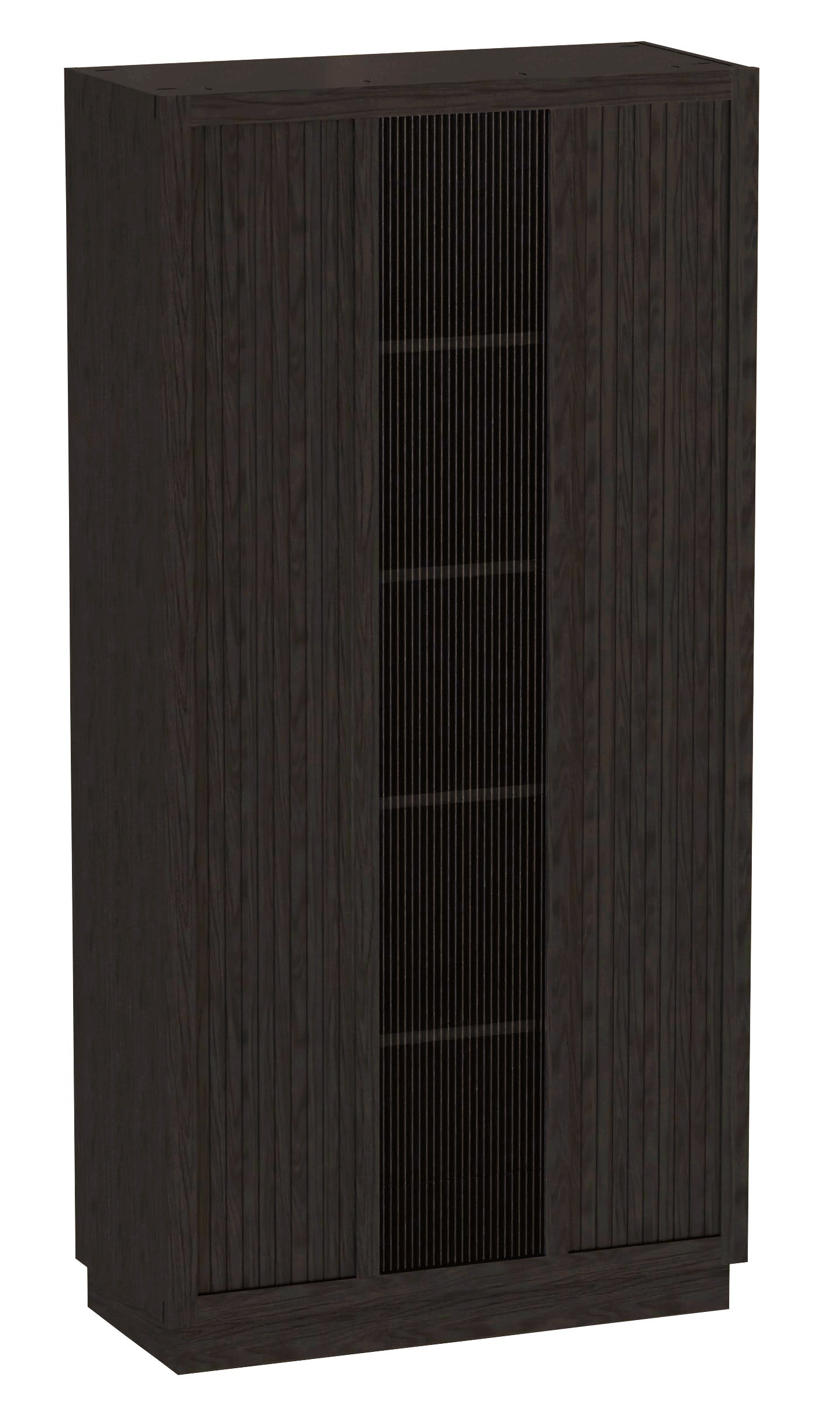 - Sliding door with center inset reeded glass and outer tambour appearance.