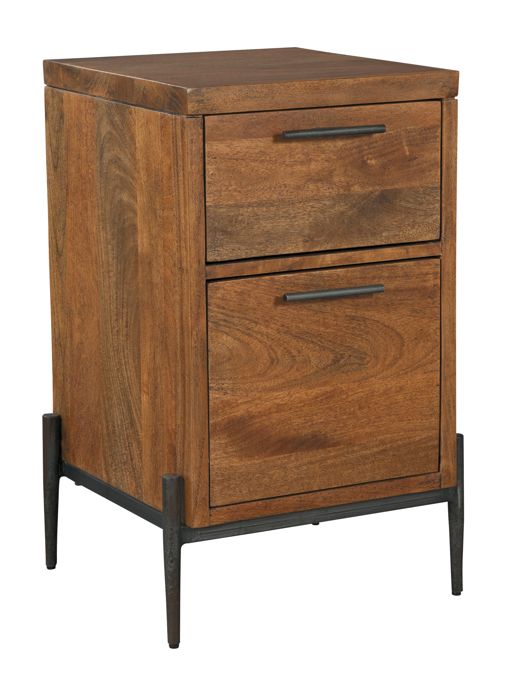 - Two drawers on full extension slides; top box drawer, lower file drawer.