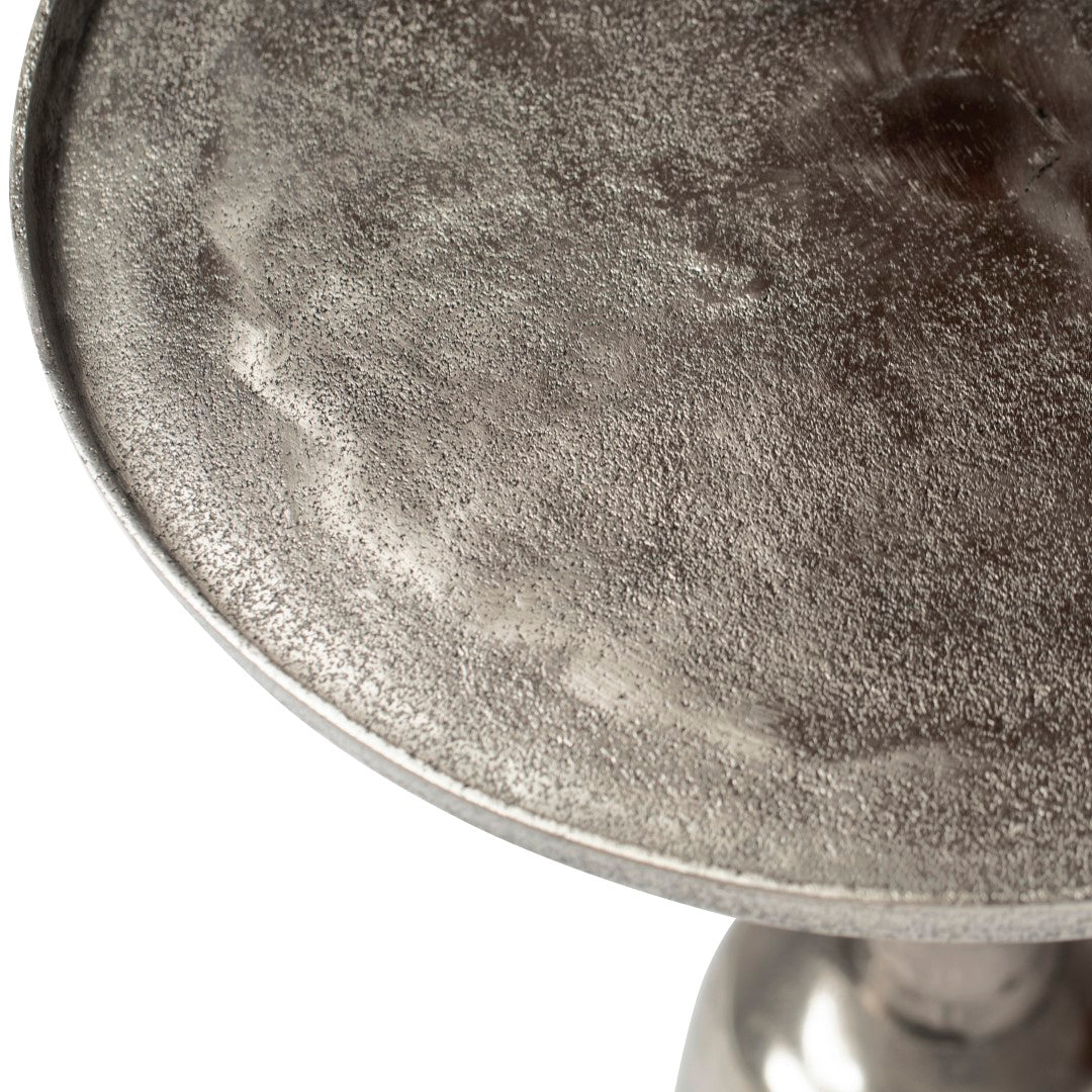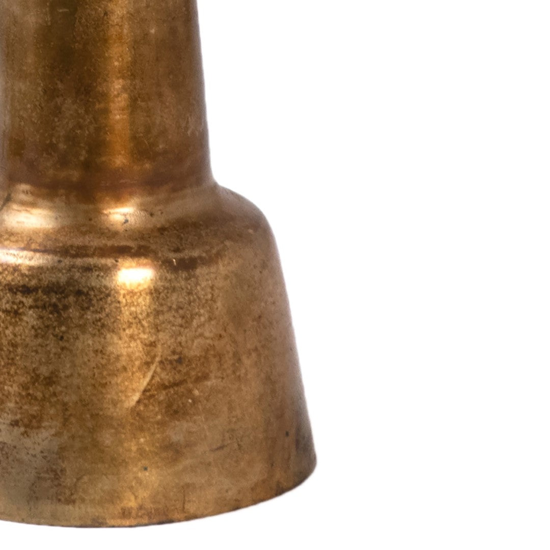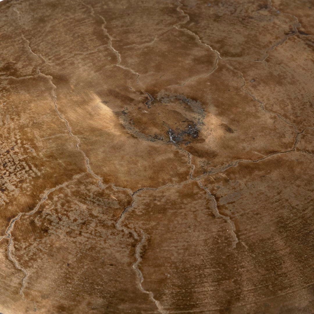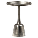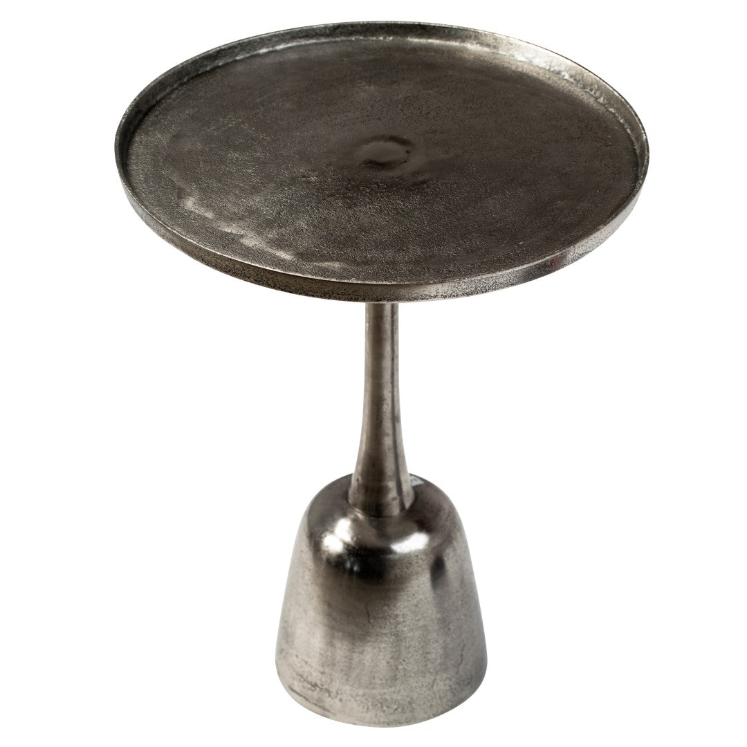 - Short Description: Industrial Styled 18" Round Cast Aluminum Side Table with a Double Tapered Pedestal Base Finished in Antique Brass