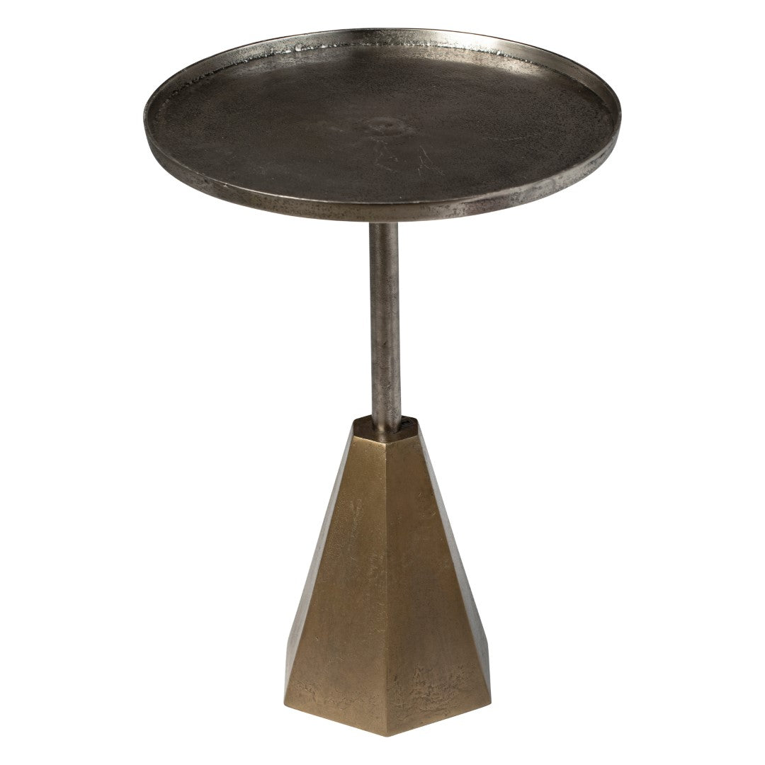 - Feature 3: ROUND INDUSTRIAL MODERN STYLING SIDE TABLE WITH ANGULAR PEDESTAL BASE