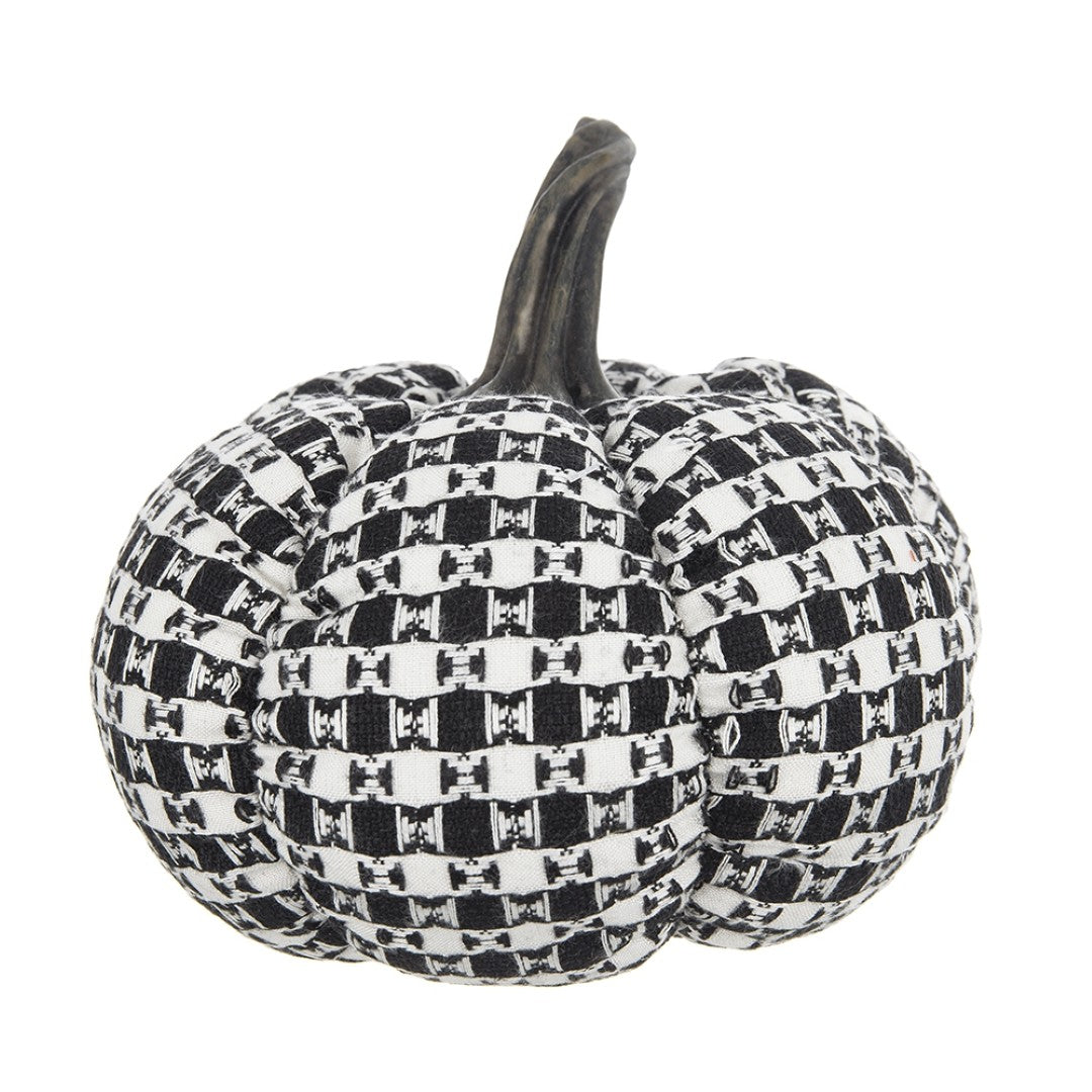- Made from white and black fabric with a knit Plaid motif, this pumpkin touches on the kind of farmhouse style that makes autumn a true delight. It's a must have for living rooms and dining rooms.