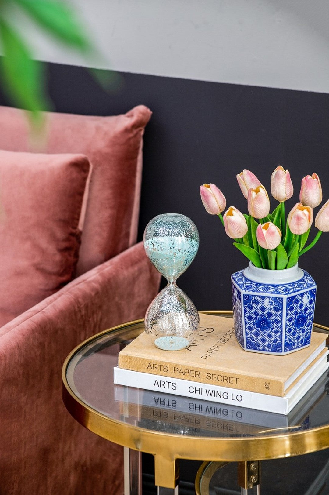 Bring a touch of timeless elegance to your home or office with this pair of reimagined hourglasses—combining classic form with a contemporary, antiqued finish. The sparkling silvered glass and distinctive jade sand create a striking visual contrast, while the gentle curves and compact footprint make these pieces versatile accents for desks, countertops, or entryway tables.