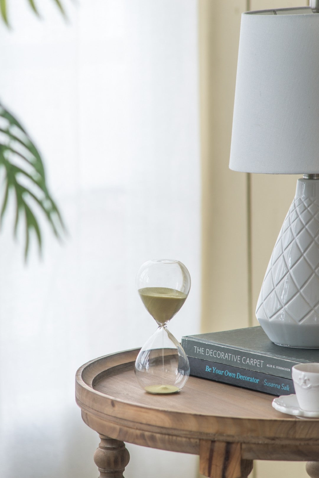 - With its breathtaking simplicity, the Ferdinand 30-Minute Hourglass with bisque sand offers an airy, contemporary style that is perfect for the home or office.