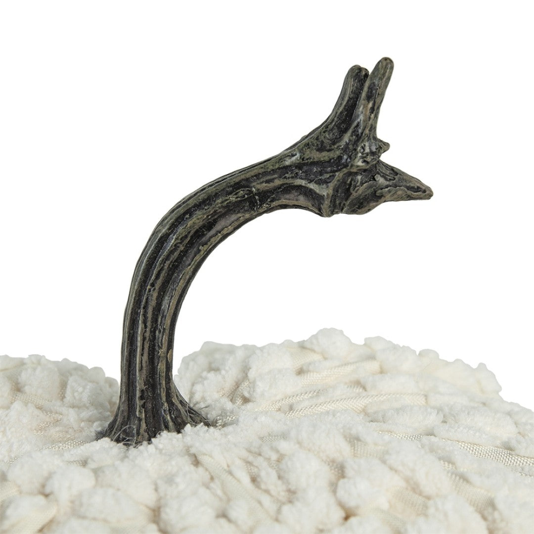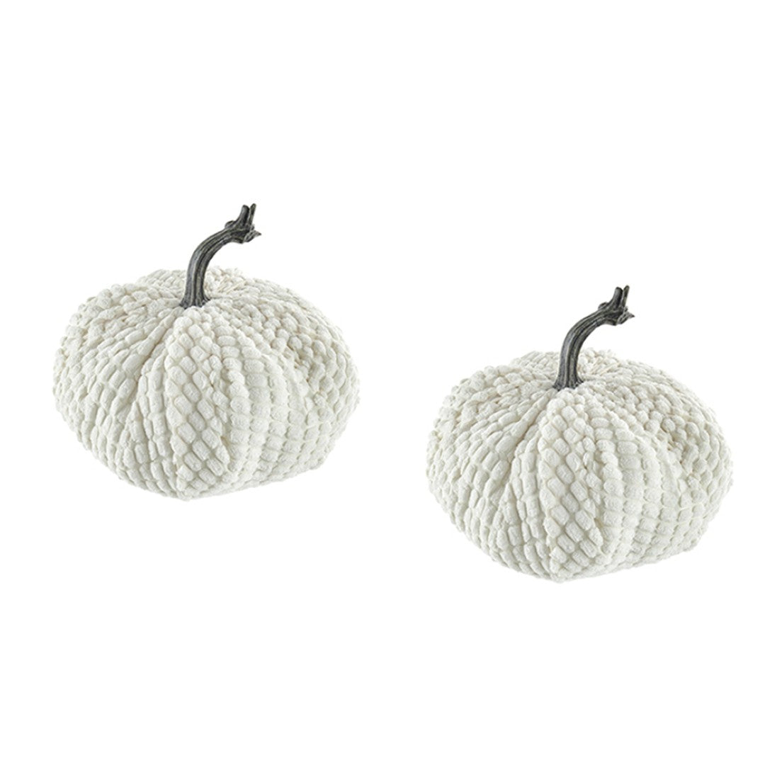 - Set includes: 2 white chenille pumpkins, styled to coordinate with neutral and rustic decor.