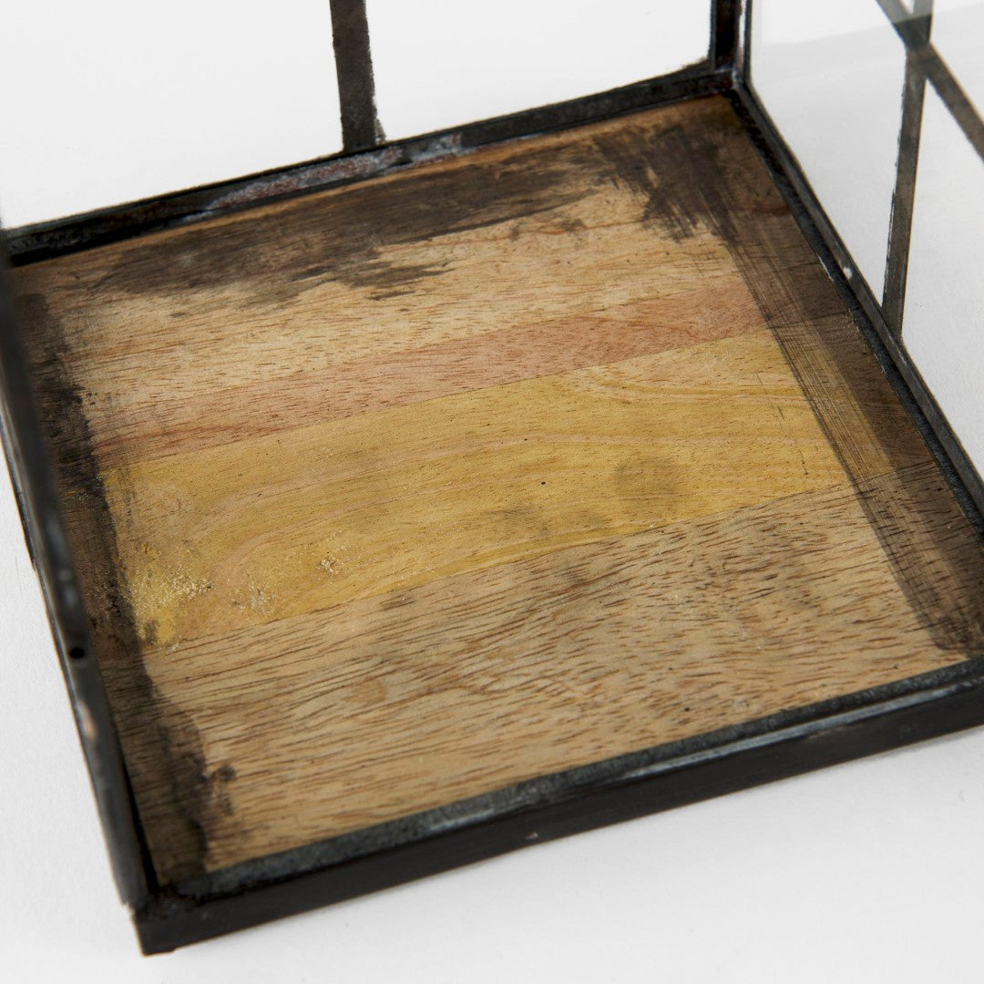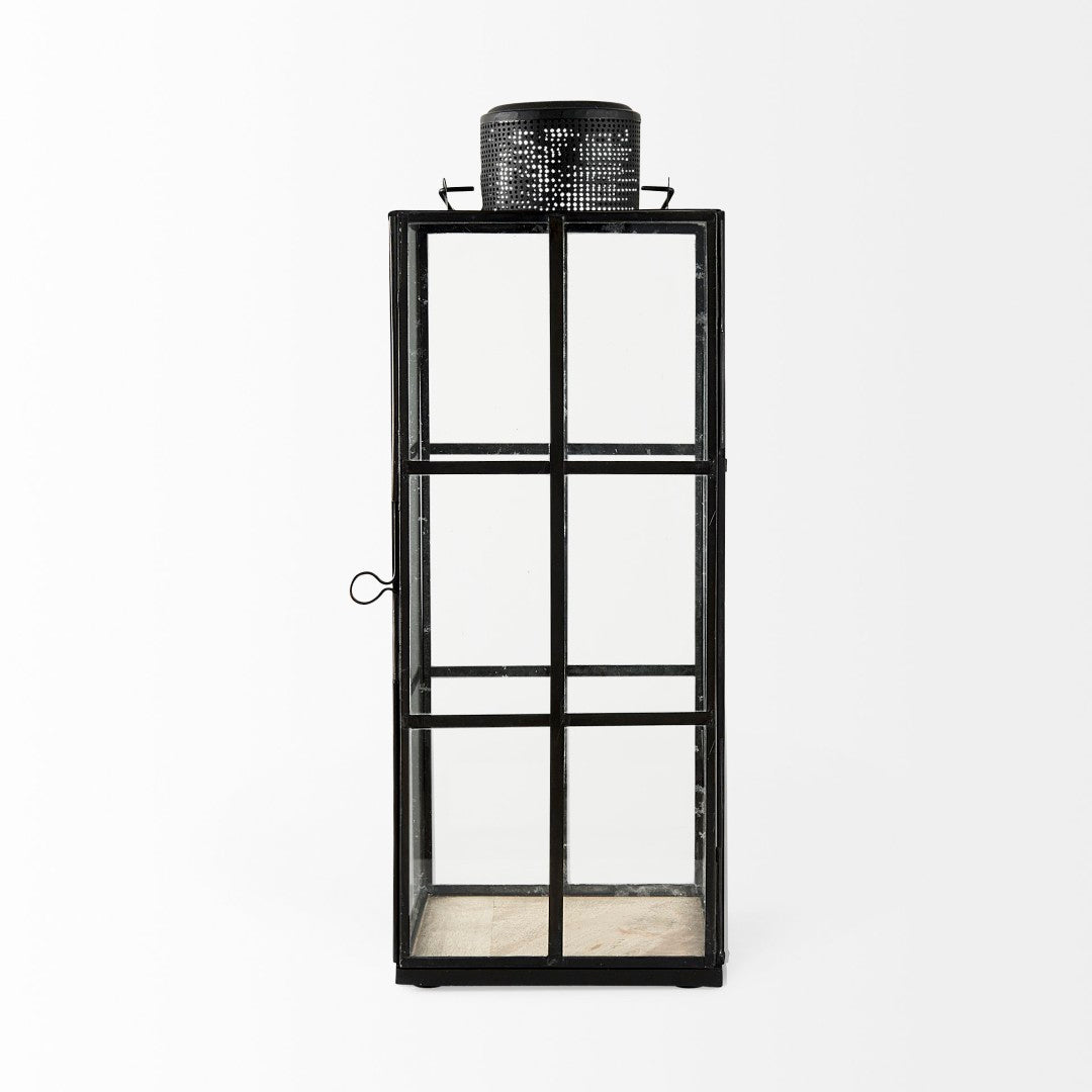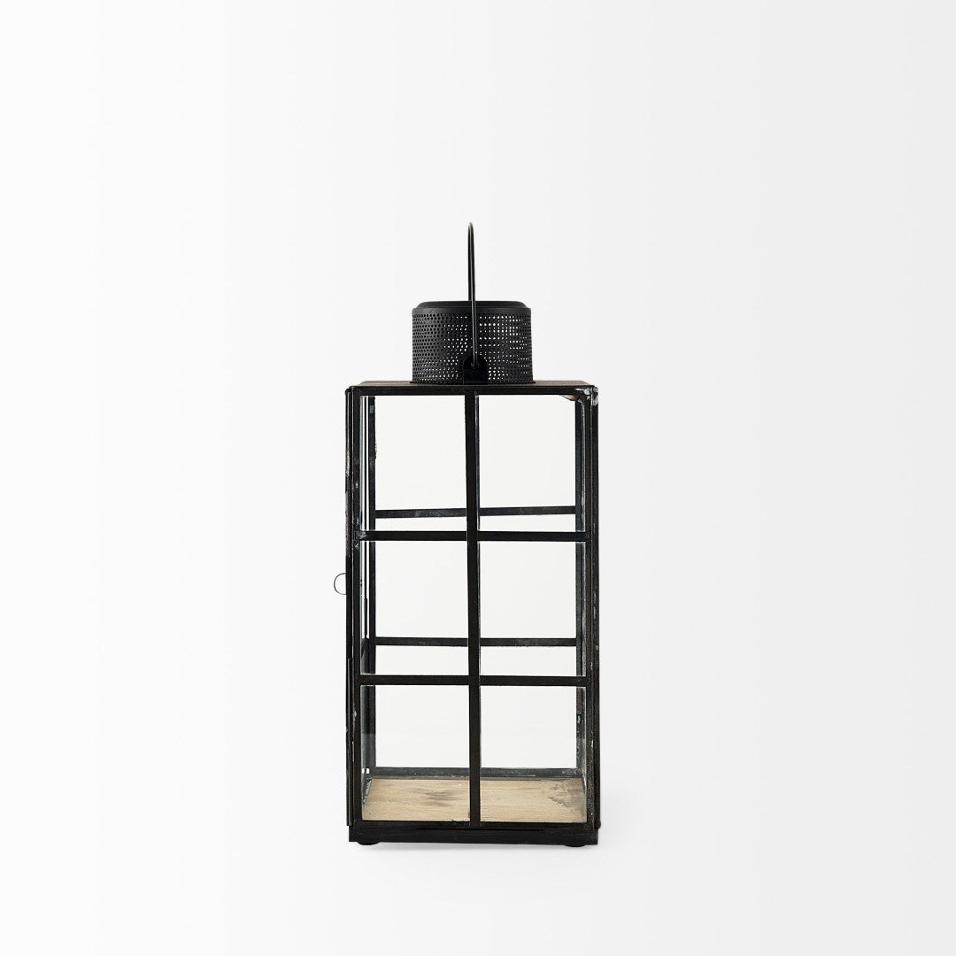 Bring industrial charm to any room with the Gamfield small lantern. Its clear glass panels set within a distressed black metal grid evoke factory-style windows, creating a striking focal point whether used solo or grouped. The hinged front door and rugged patina make it both practical and decorative—ideal for soft interior ambiance, seasonal displays, or accent lighting in loft, farmhouse, or modern-industrial settings.